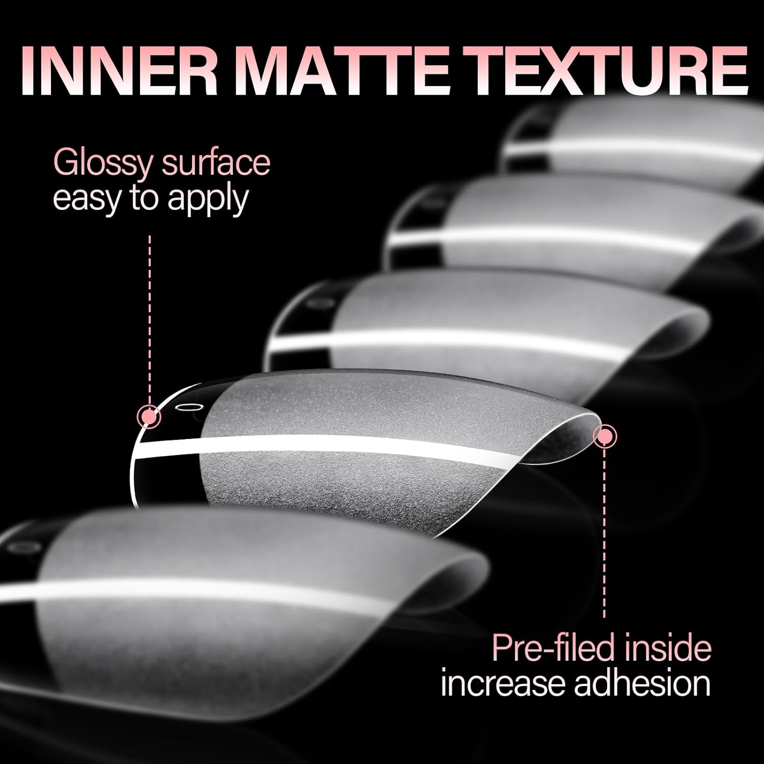 - 【Fits Nail Curvature, Natural & Comfortable, No Scratching】: Designed based on the natural curvature of nails, with edges finely polished to 0.1mm rounded corners. The fake nail fits the natural curve of your nails without air bubbles, ensuring no foreign body sensation and flexible finger movement. The smooth, burr-free surface prevents scratches on clothes or skin, making daily wear safer.