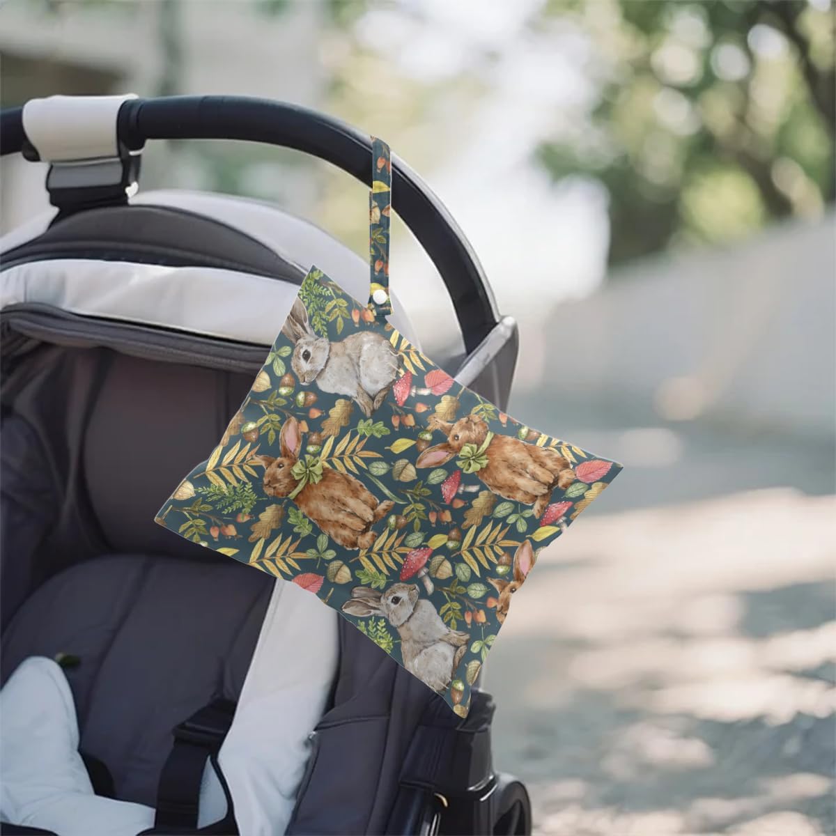 2Pcs Bunny Wet Bag 12x10 Inch, Rabbit Waterproof Reusable Wet Dry Bags, Floral Washable Travel Laundry Bags for Swimsuit Pool Beach Diapers Dirty Yoga Gym Clothes, Flowers Gifts for Women Friend