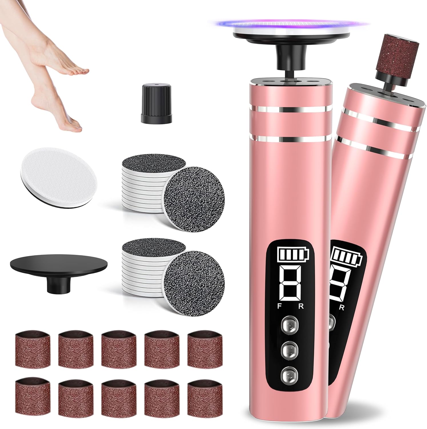 - 2-in-1 Electric Callus Remover Tools for Feet & Nail: This Electric Foot Callus Remover comes with two types of care-Feet & Nail. Professional-grade device quickly removes tough foot calluses and dead skin with gentle rotating action,estoring your feet to a soft, smooth state,while precision edge polishes nails to salon-quality finish