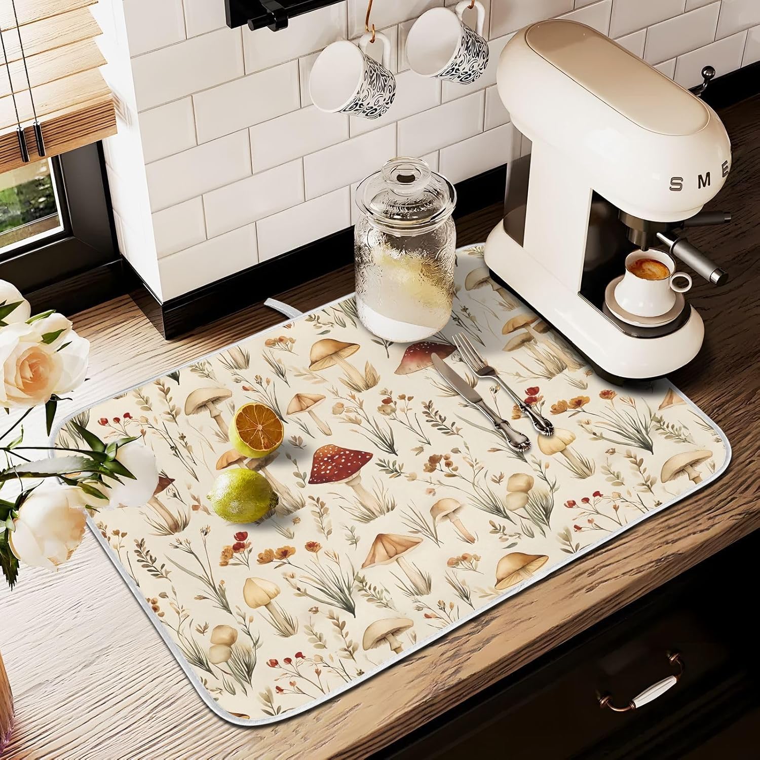 Mushroom Fall Forest Dish Drying Mats for Kitchen Counter, 18x24 inch Drying Dishes Absorbent Microfiber Dish Drainer Mat Rack Pad Fast Dry