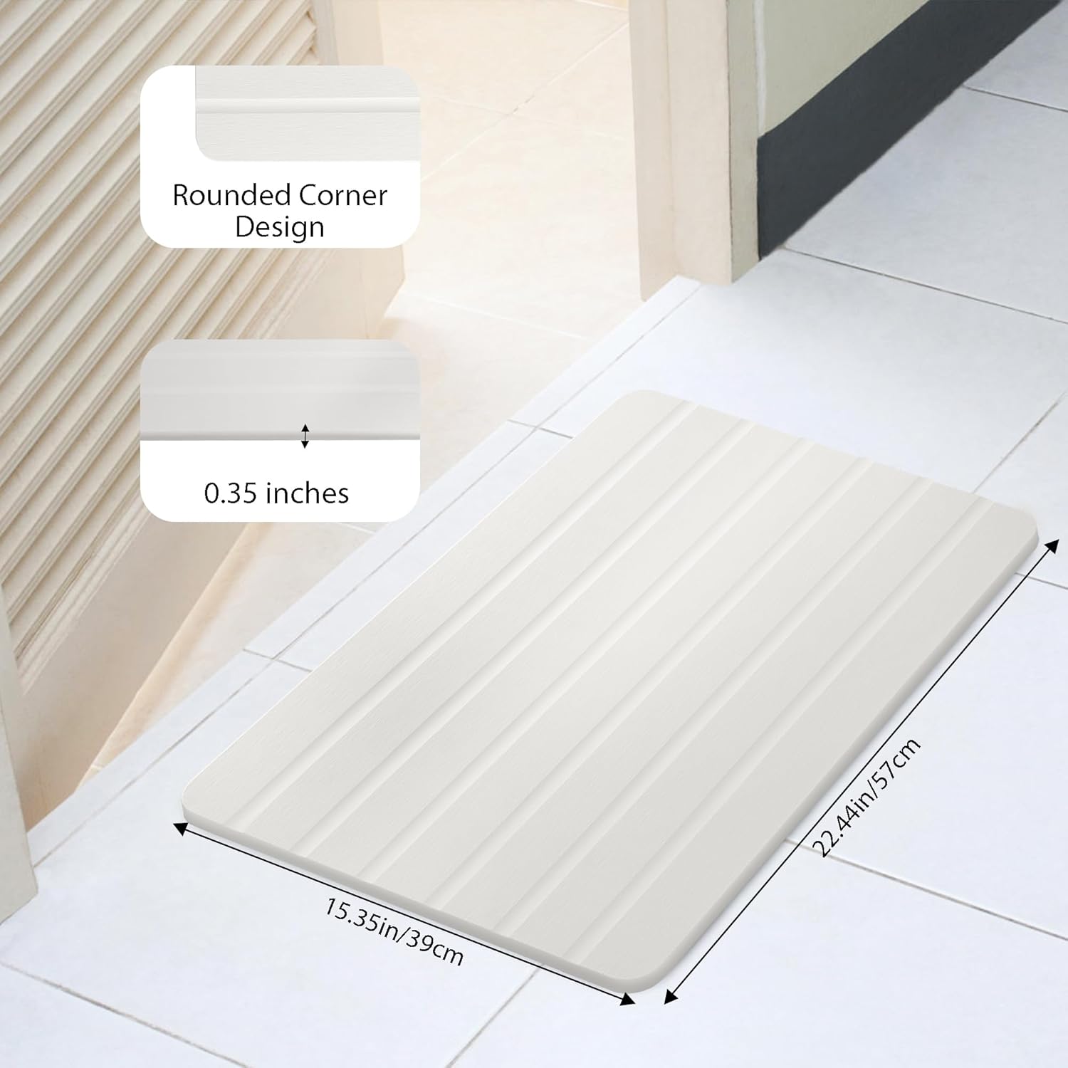 - 【Non-Slip】Our shower mat features parallel lines carved design, blending aesthetics with slip resistance. The included PVC anti-slip pad can be placed under the stone pad to enhance anti-slip performance and protect the floor.