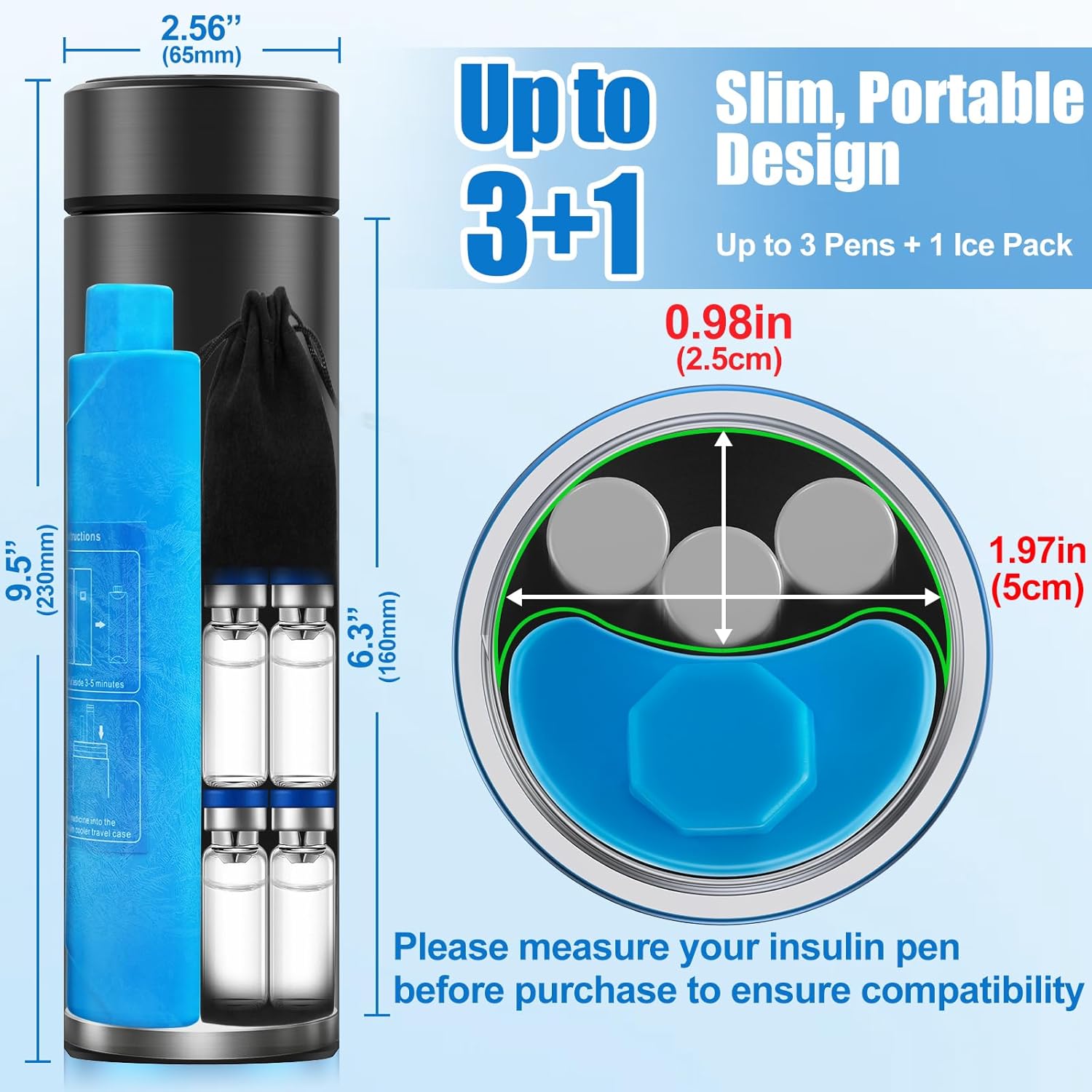 - 【Fits 2–3 Insulin Pens or Vials – Compact Yet Spacious】- Hold up to 3 insulin pens or medicine vials, this compact insulin pen cooler travel case is perfect for your daily use or multi-day trips. Compatible with most popular insulin pen models on the market