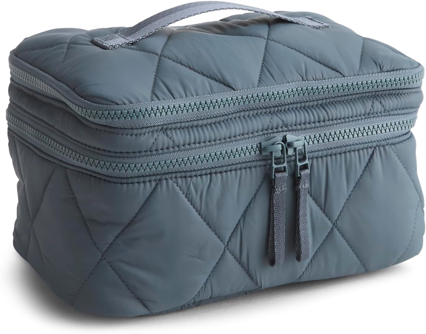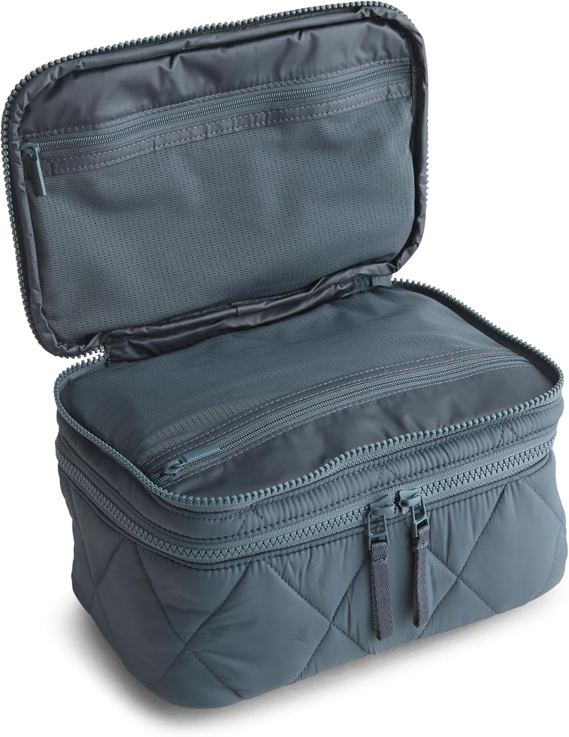 • DETAILS - Interior features two zip pockets, two slip pockets, and eight elastic makeup brush loops with a wipeable TPU cover
