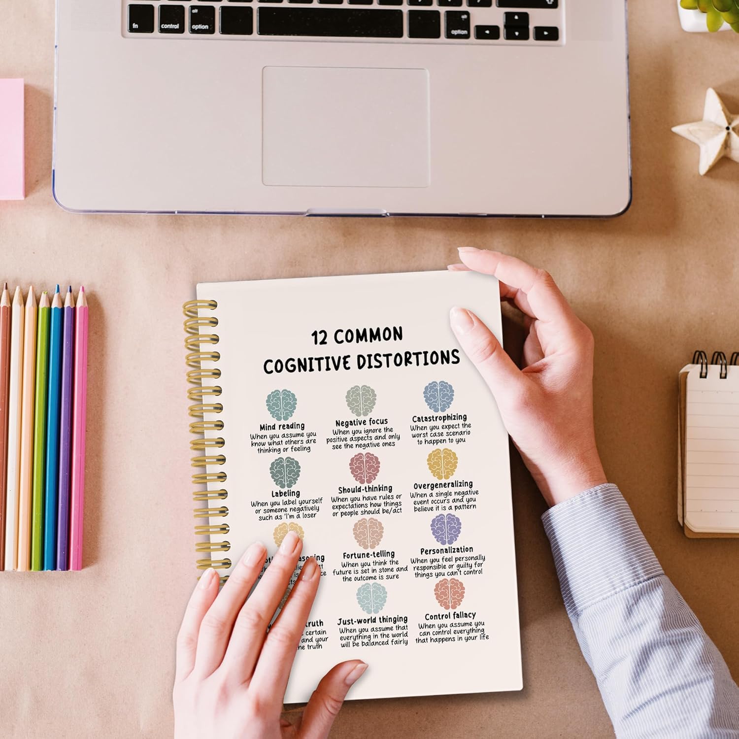 XPH Mental Health Cognitive Distortions Spiral Notebook, Psychology Journaling Notebooks for Women Men, Therapy Hardcover Journal for Counselor Office 160 Pages 5.5 x 8.3 Inch, Mental Health Gifts