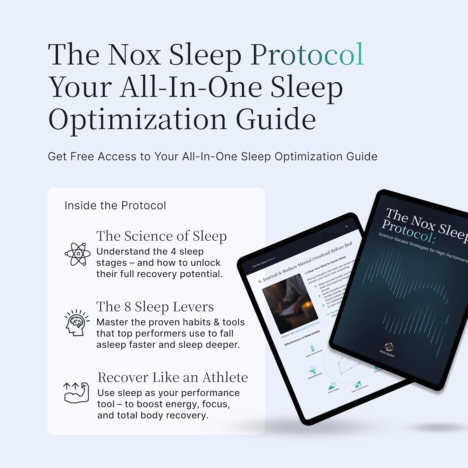 - 𝐔𝐥𝐭𝐢𝐦𝐚𝐭𝐞 𝐒𝐥𝐞𝐞𝐩 𝐎𝐩𝐭𝐢𝐦𝐢𝐳𝐚𝐭𝐢𝐨𝐧 – Includes the Nox Sleep Protocol with science-backed tips. Achieve better sleep, a sharper mind, and peak performance!