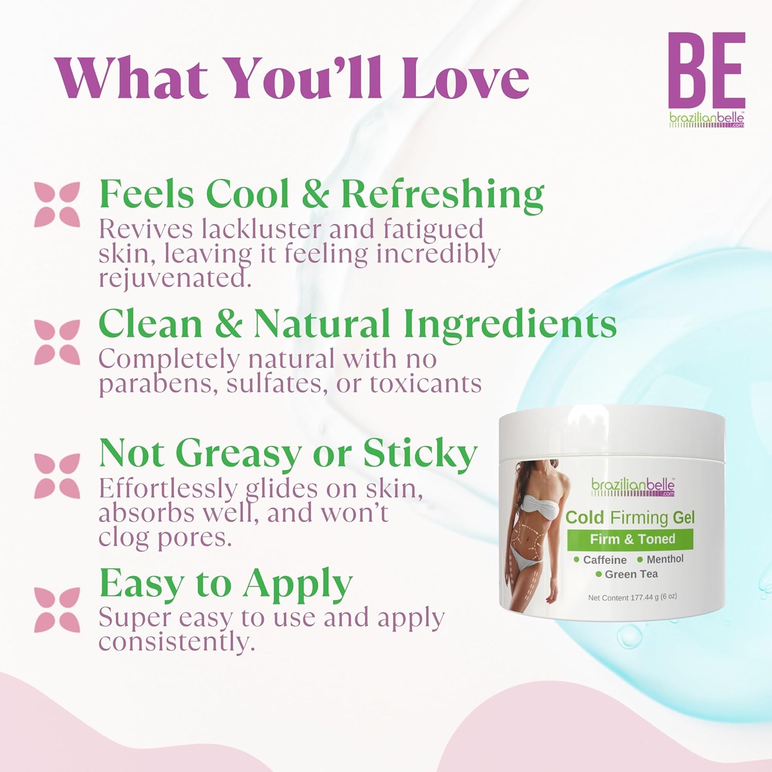 Brazilian Belle Cold Firming Gel - Skin Tightening & Anti Cellulite Gel with Caffeine - Advanced Skin Firming & Body Firming Cream for Loose & Sagging Skin