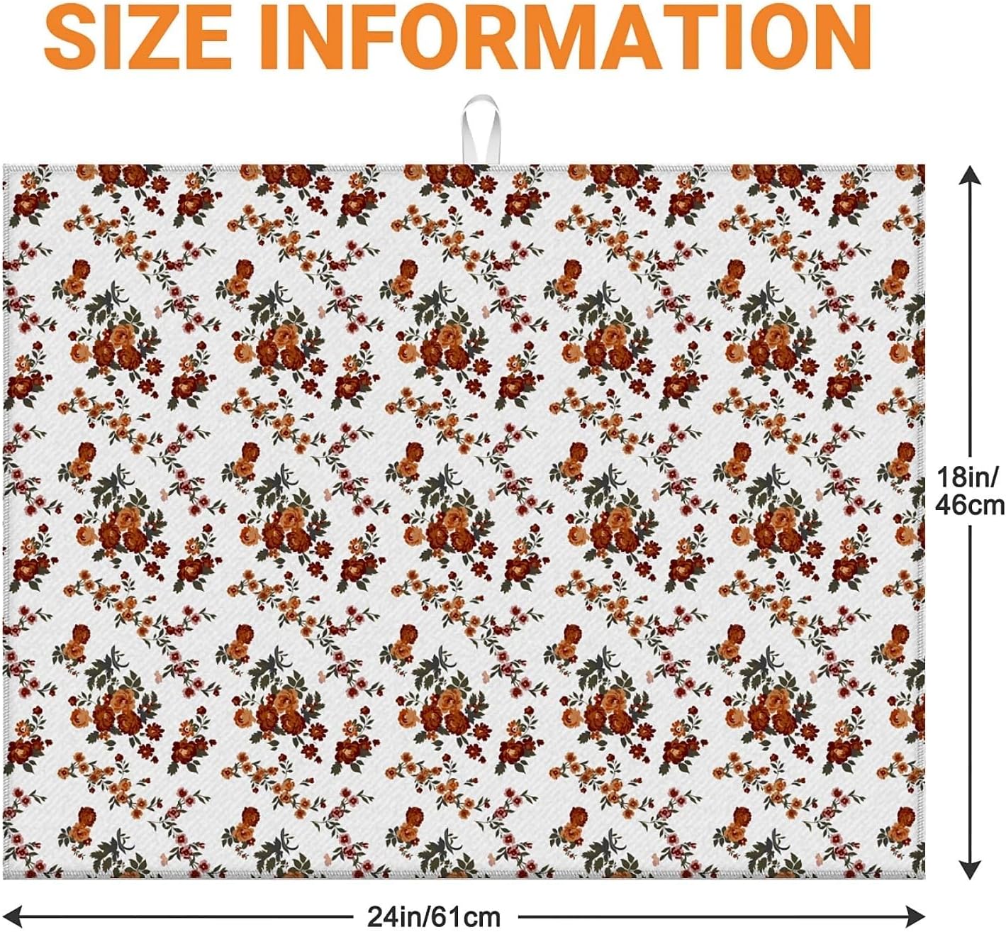 Dish Drying Mat For Kitchen Counter, Retro Brown Flowers Floral Microfiber Absorbent Dish Drainer Rack Pad Reusable Large 18x24in Drying Mat