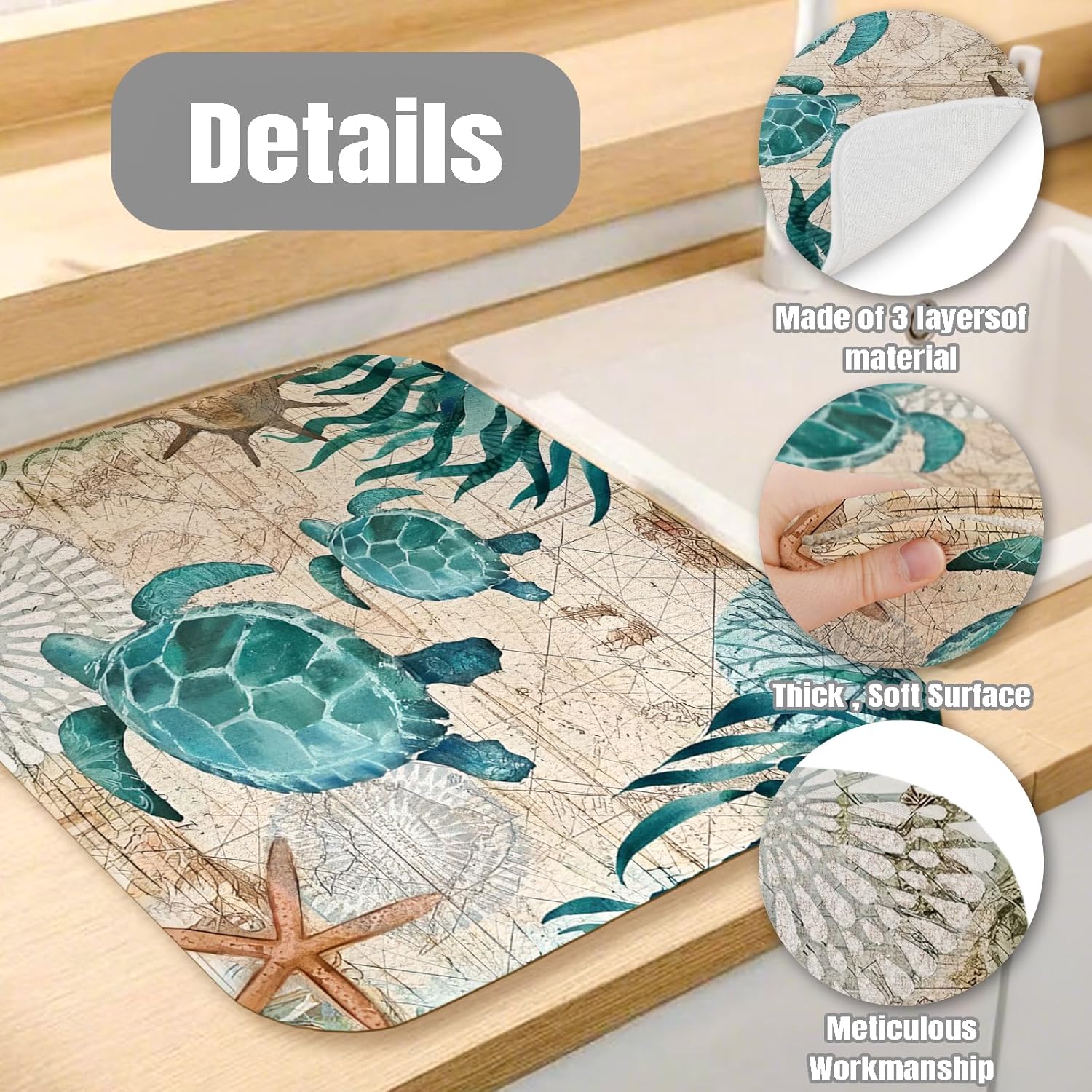 Dish Drying Mat for Kitchen Counter Large 16" x 18" Seaturtle Absorbent Microfiber Dishes Drainer Rack Mats Pad Reusable Washable