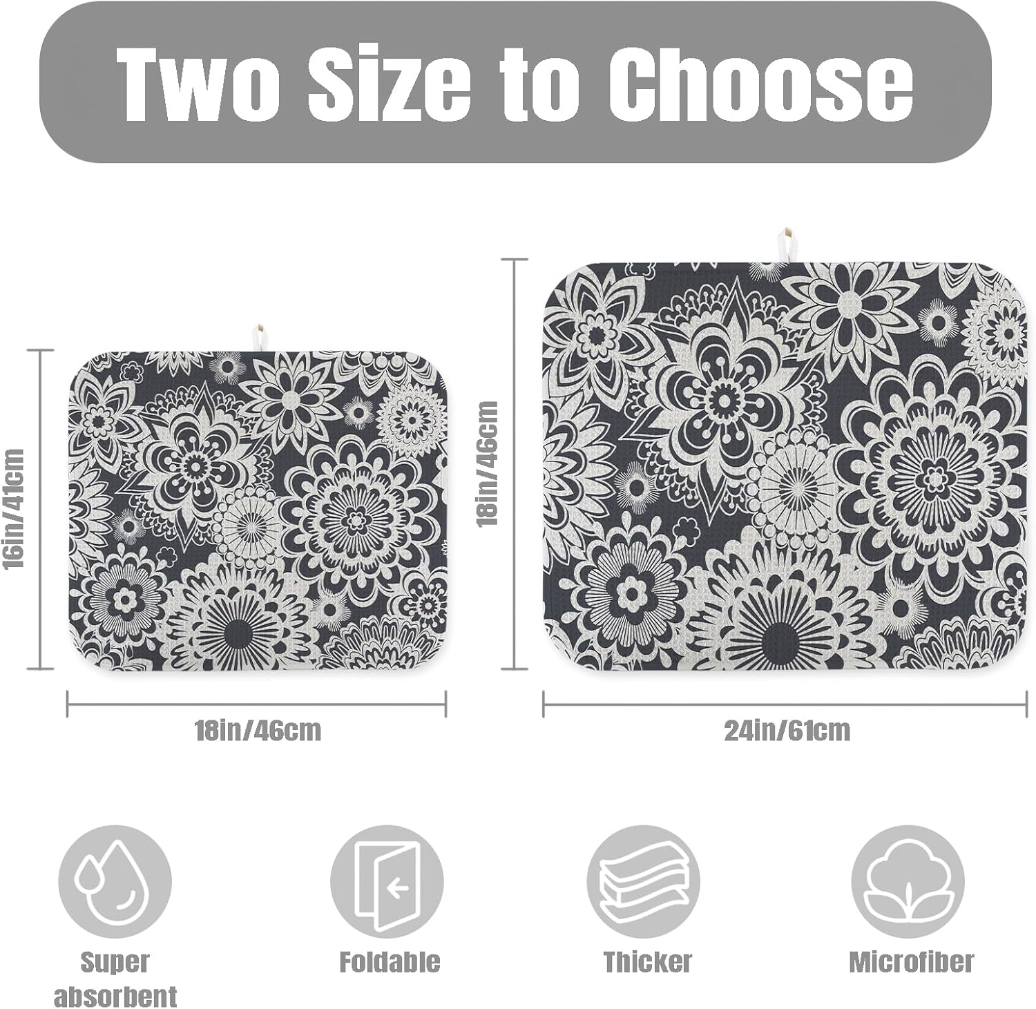Dish Drying Mat for Kitchen Counter Large 18" x 24" Mandala Absorbent Microfiber Dishes Drainer Rack Mats Pad Reusable Washable