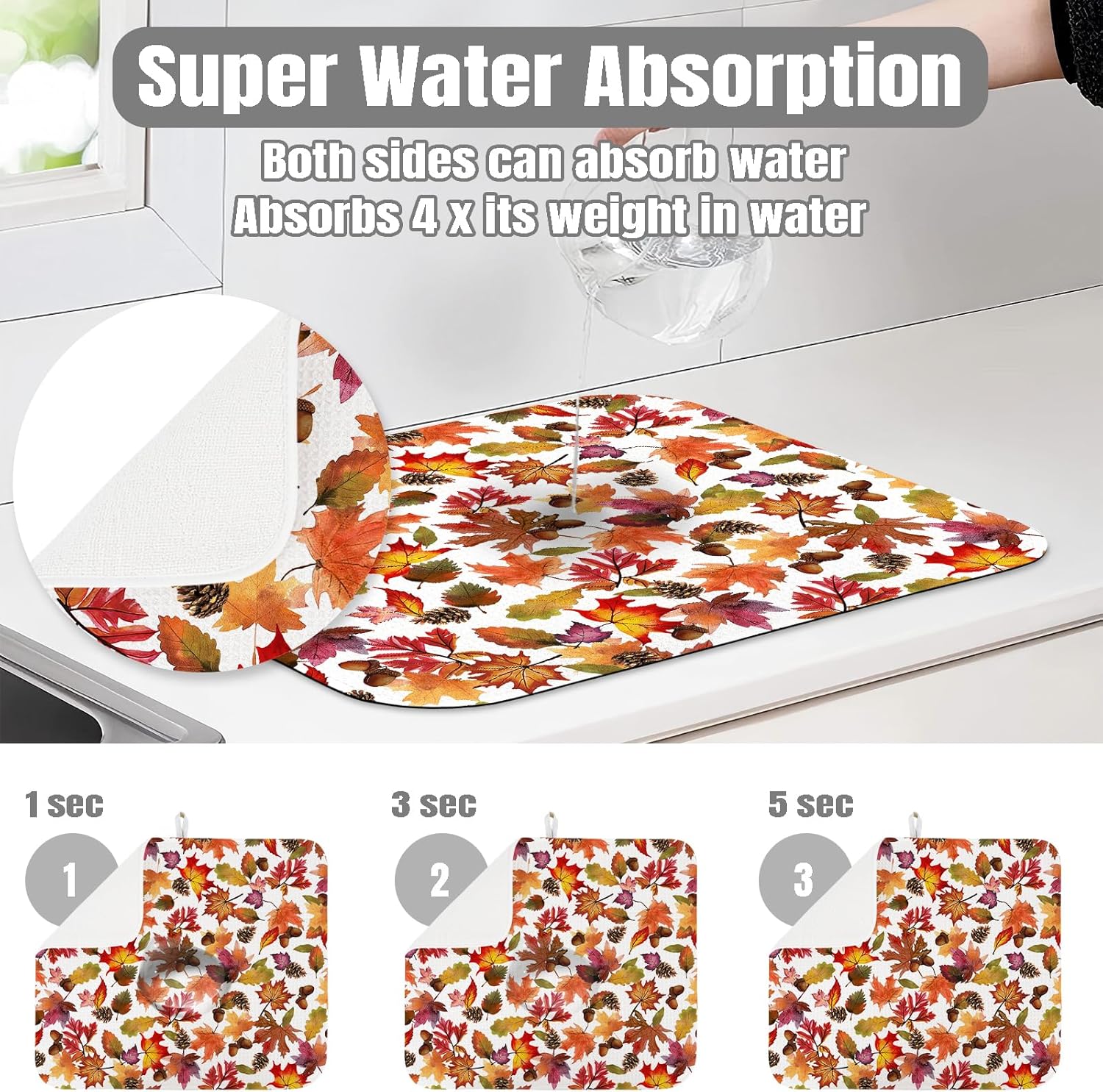 Dish Drying Mat for Kitchen Counter Large 18" x 24" Fall Leaves Absorbent Microfiber Dishes Drainer Rack Mats Pad Reusable Washable