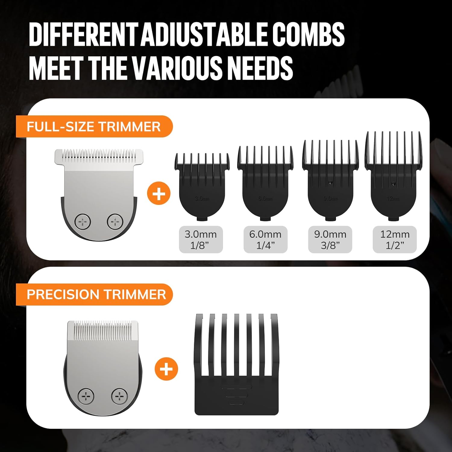 - Exquisite Craftsmanship Design and Materials: This men's Beard Trimmer and Hair Clipper Set uses high-performance stainless steel blades with a precise gap design to improve safety and minimize friction while trimming. The R-shaped 360° skin-friendly blunt edge blades trim quickly and safely without pulling or irritating the skin. This hair clipper is versatile enough to meet your needs at home or in a professional environment