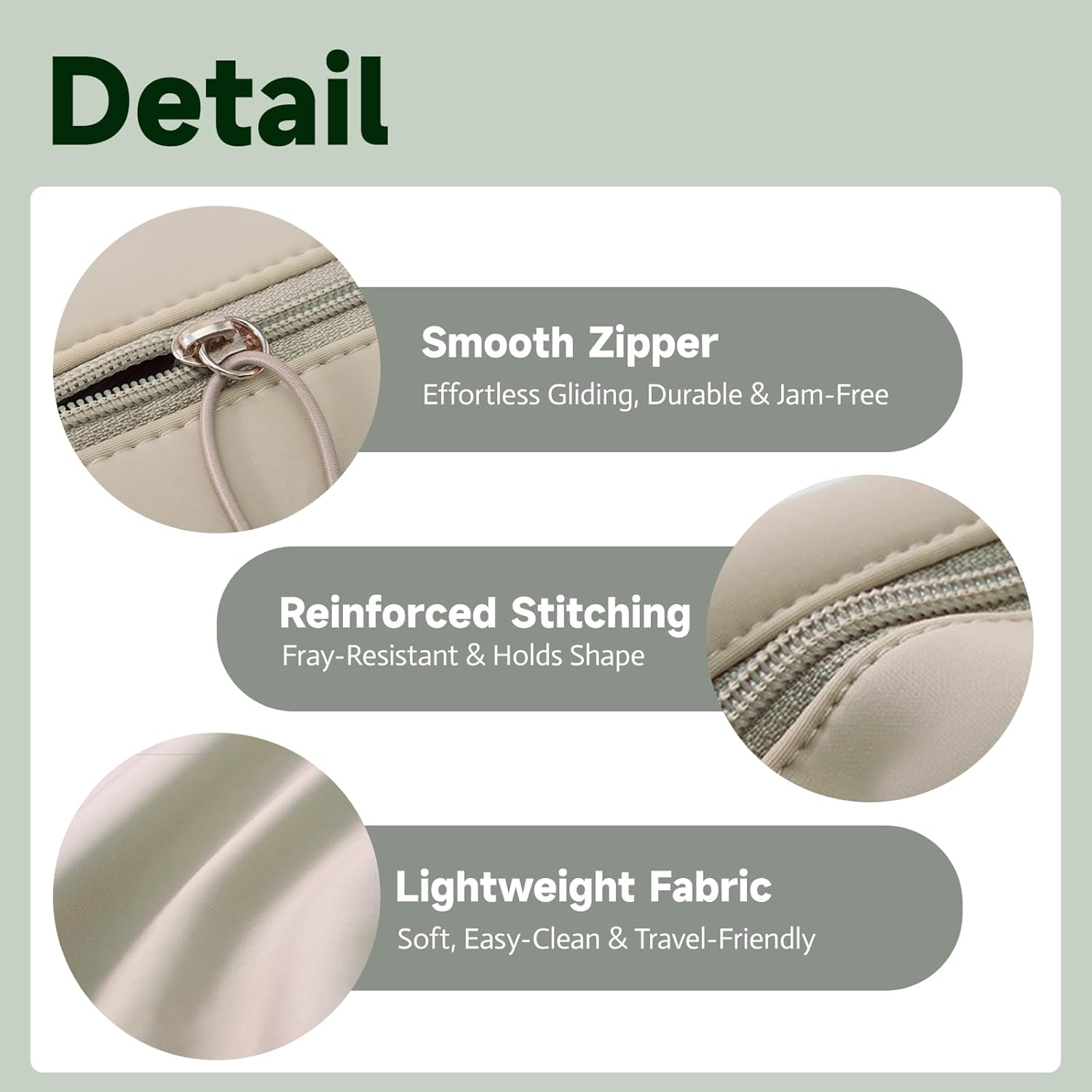 - /Premium Fabric/:Small makeup bag for purse is crafted from special air-layer fabric—soft, elastic, and shock-absorbent.The zippered closure ensures contents stay secure, With this makeup bag organizer, enjoy worry-free use.