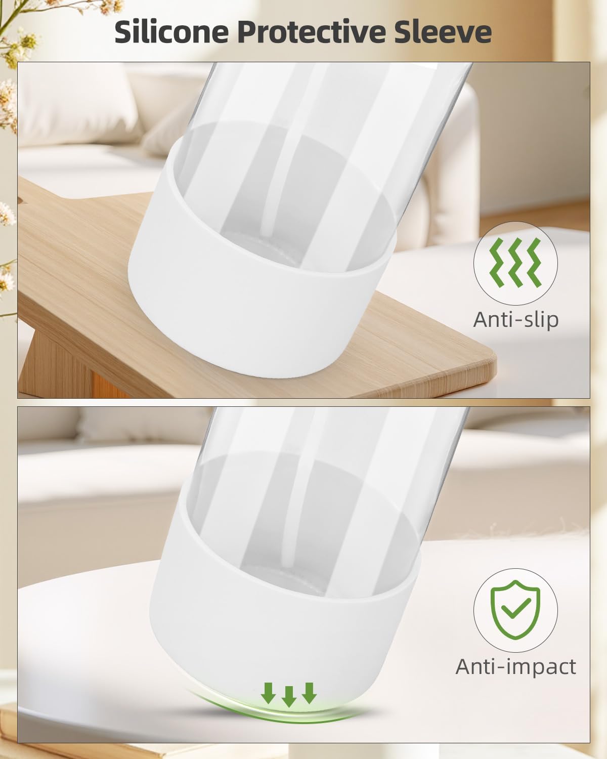 - Premium Glass & Sturdy Silicone Sleeve: Crafted from high-transparency glass, our glass cleaning bottles offer a clear view of liquid levels, ensuring effortless monitoring and usage. The included silicone sleeve ensures minimizing the risk of breakage and slips, making it safe for daily use.