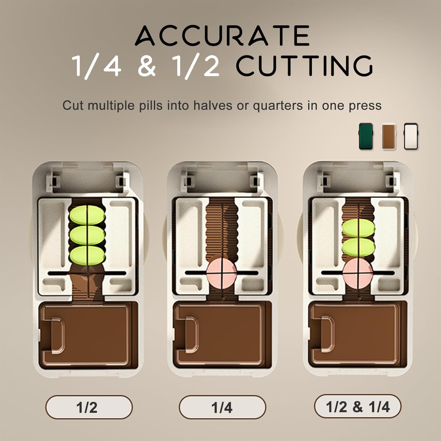 - 【Accurate 1/4 & 1/2 Cutting】Cut multiple pills into halves or quarters in one press, no realignment needed; Saves 50% time vs. single-cut