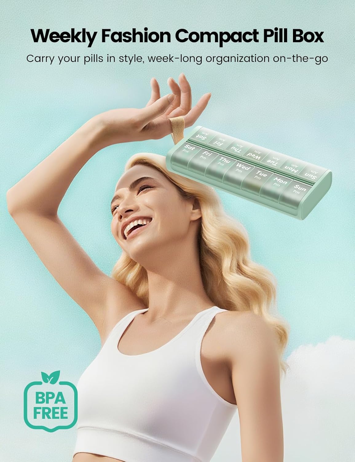 - 【Moisture-Proof & Light Protection】 An independent desiccant compartment and opaque lids keep tablets dry and shielded from light. This moisture-proof pill organizer preserves pill freshness and potency throughout your weekly routine.