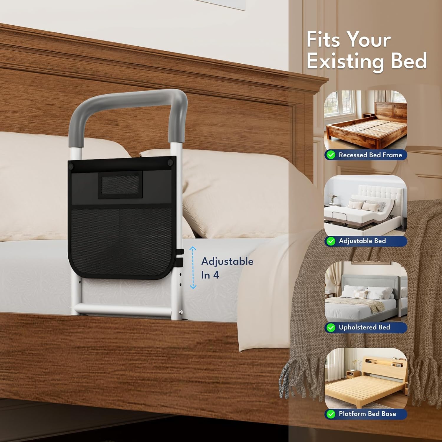 - 【Ergonomic Support Bar, Bedside Assistance】:The bedside assist design specifically for seniors living at home or in assisted living facilities, boosts independence and mobility. Designed for adults, seniors, and those with mobility challenges. Ergonomic grips align with natural body movement and soft non-slip handle aids for getting in and out of bed easily and secure, this bed assist rail is designed for long-term use and easy maintenance