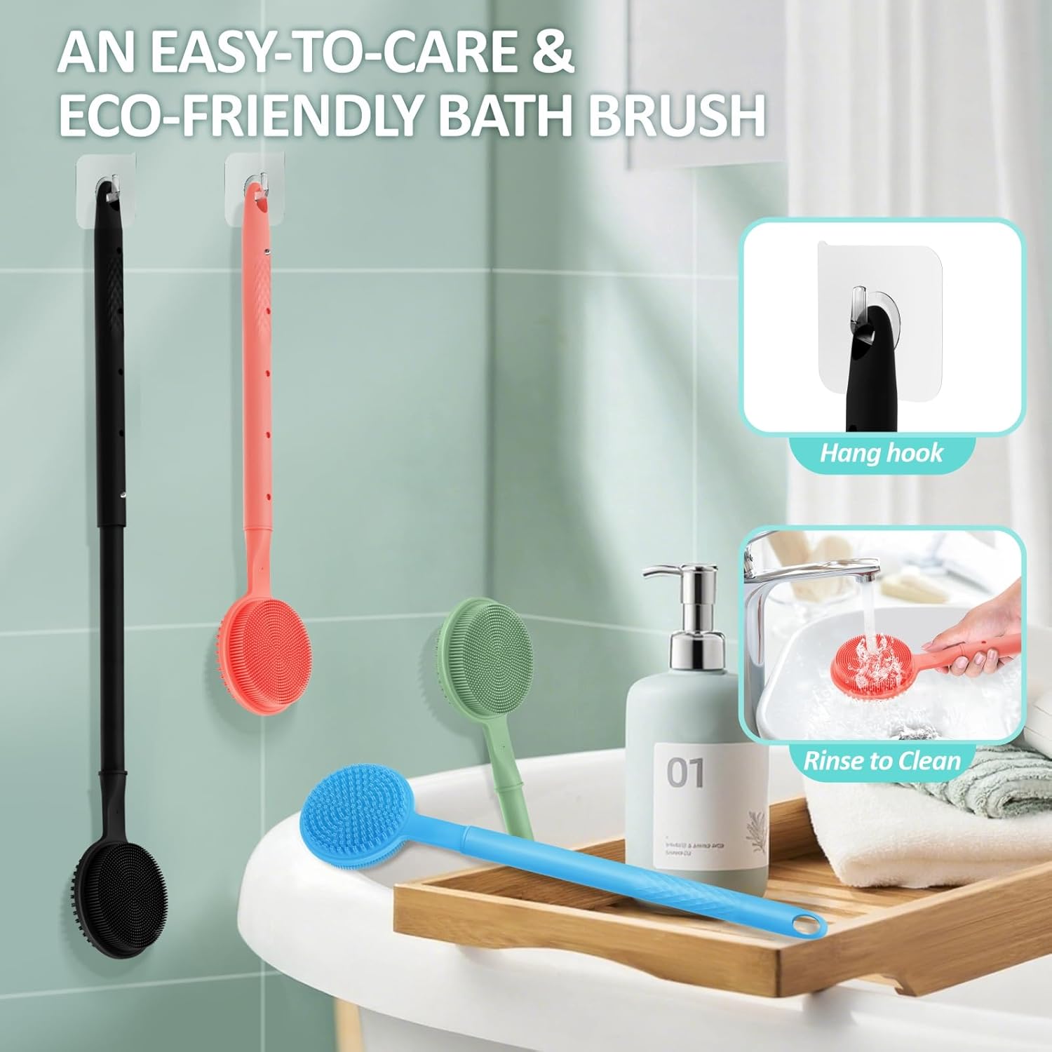 - 【Easy-to-care & Eco-friendly】GEENOA back scrubber is easy to clean, quick-drying and no molding. You just need to rinse and hang dry. It’s super durable to last for a long time. Package includes: back scrubber x1, free hook x1.