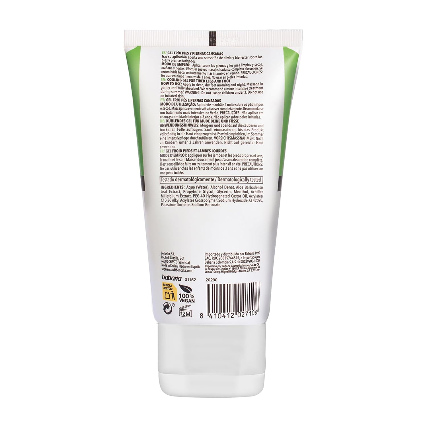 - PROVIDES A FAST HYDRATING EFFECT. The effective formula of Babaria Foot Cooling Gel combines the soothing benefits of aloe vera with the nurturing and decongestant properties of Achillea millefolium, a plant used in cosmetics to assist in well-being.