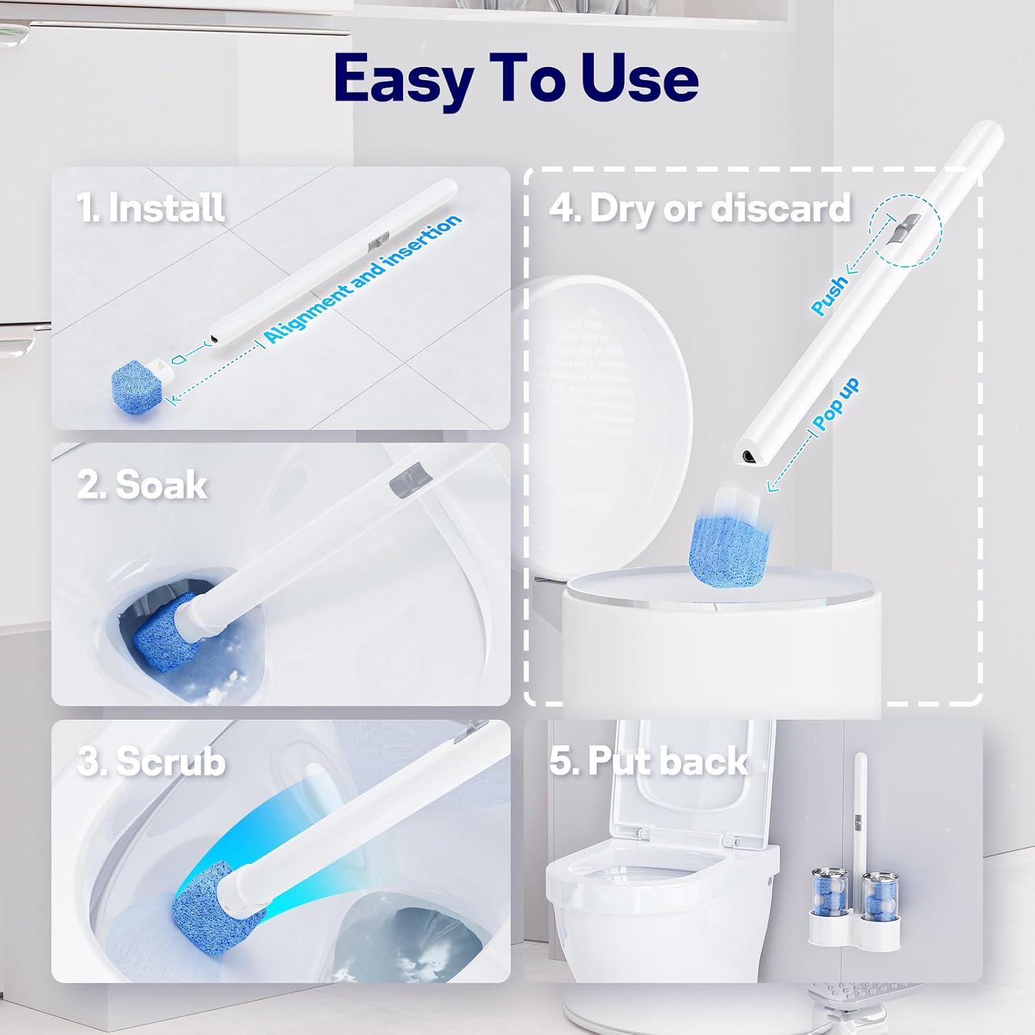 - 【One-Touch Head Ejection】: Pumice stone for cleaning after use simply press the button on the sturdy 2-piece handle to instantly drop the used pumice head into the toilet – no messy hand contact required! Enjoy a cleaner, more convenient cleaning experience