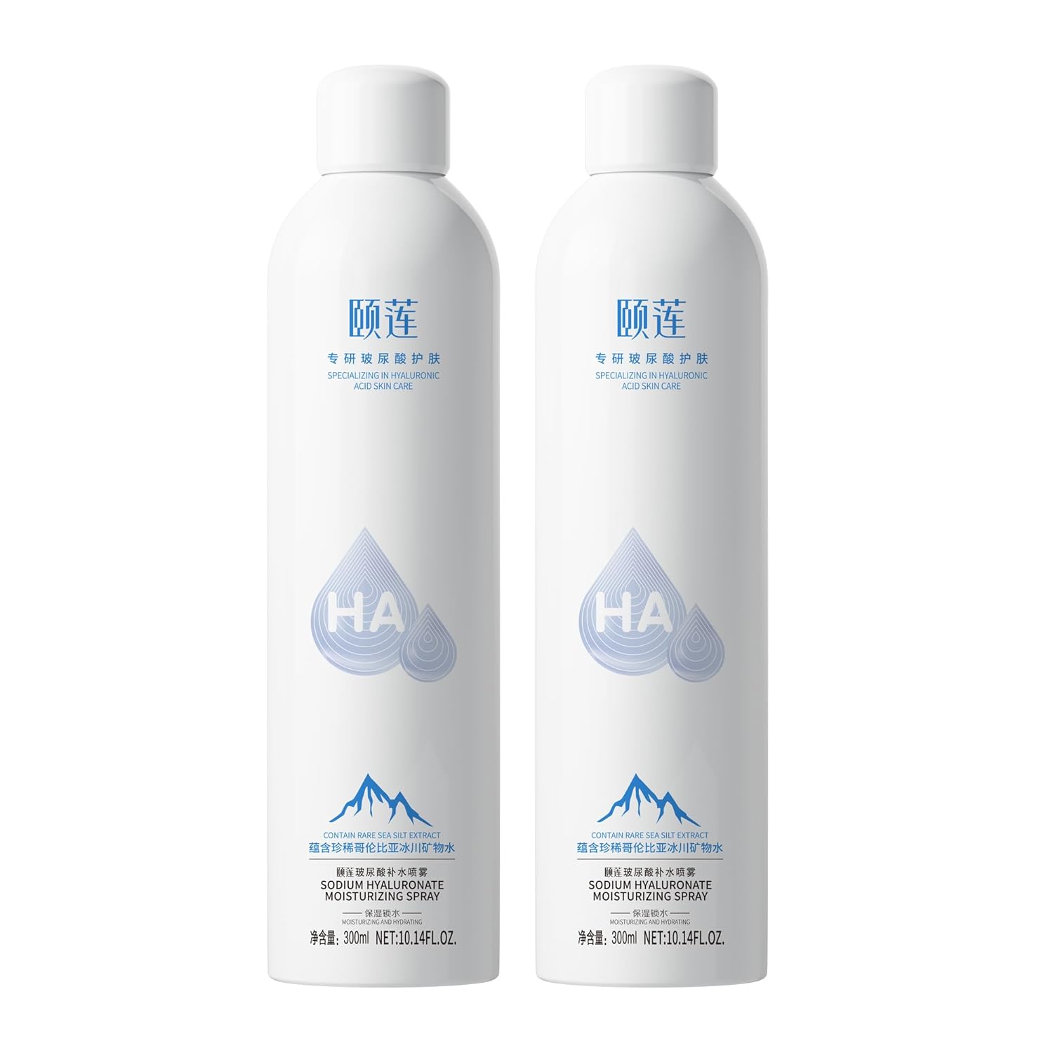 - This hydrating face mist features sodium hyaluronate (hyaluronic acid) and Columbia glacier mineral water, rich in over 70 beneficial minerals and trace elements. This facial mist spray hydration formula deeply hydrates without drying the skin.