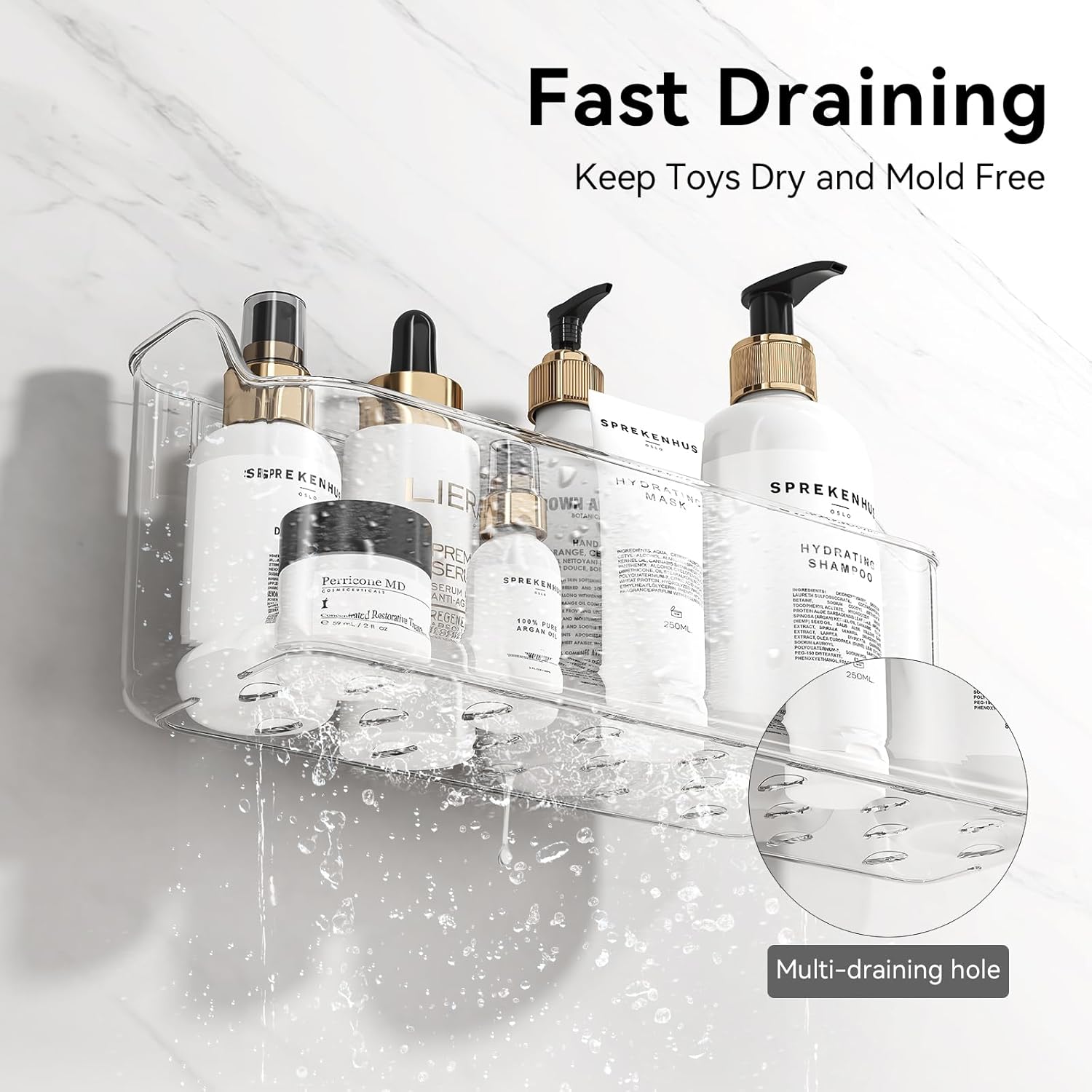 - CLEAR BATH TOY STORAGE: Made of premium ABS material, this bath tub storage is durable and highly transparent, allowing you to check and access the bath toys and bathroom essentials at a glance.