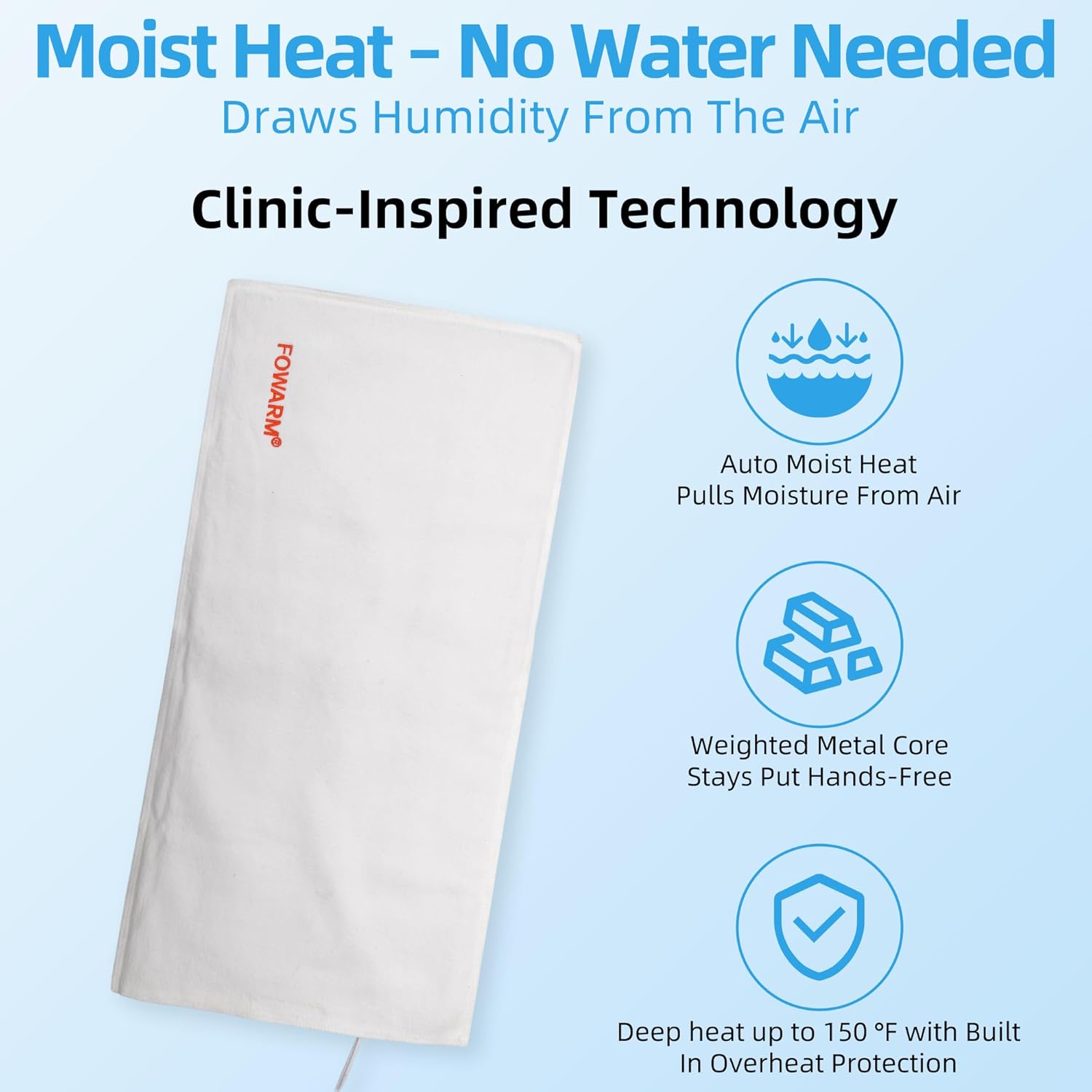 - Moist Heat Technology for Deep Penetration: The ultra-soft removable cover draws moisture from the air to create therapeutic steam, offering deeper relief than dry heat pads—ideal for chronic pain, period cramps, and muscle soreness.