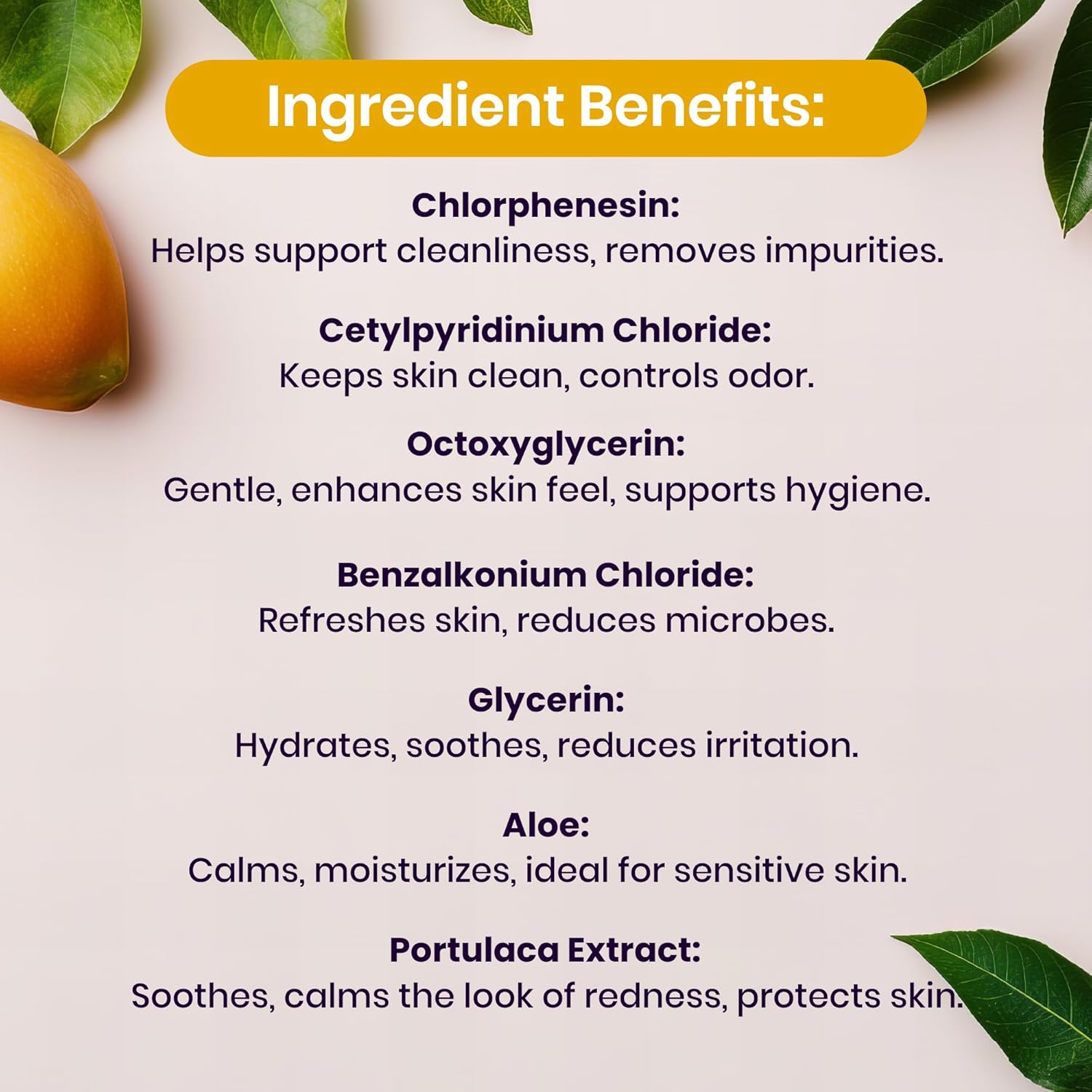 Mango Scented Daily Feminine Wipes for Women – pH Balanced Unflavored Intimate Wipes – Water-Based, Aloe-Infused, Gentle on Sensitive Skin – Vegan, No Alcohol or Dyes, Travel-Friendly - 30ct
