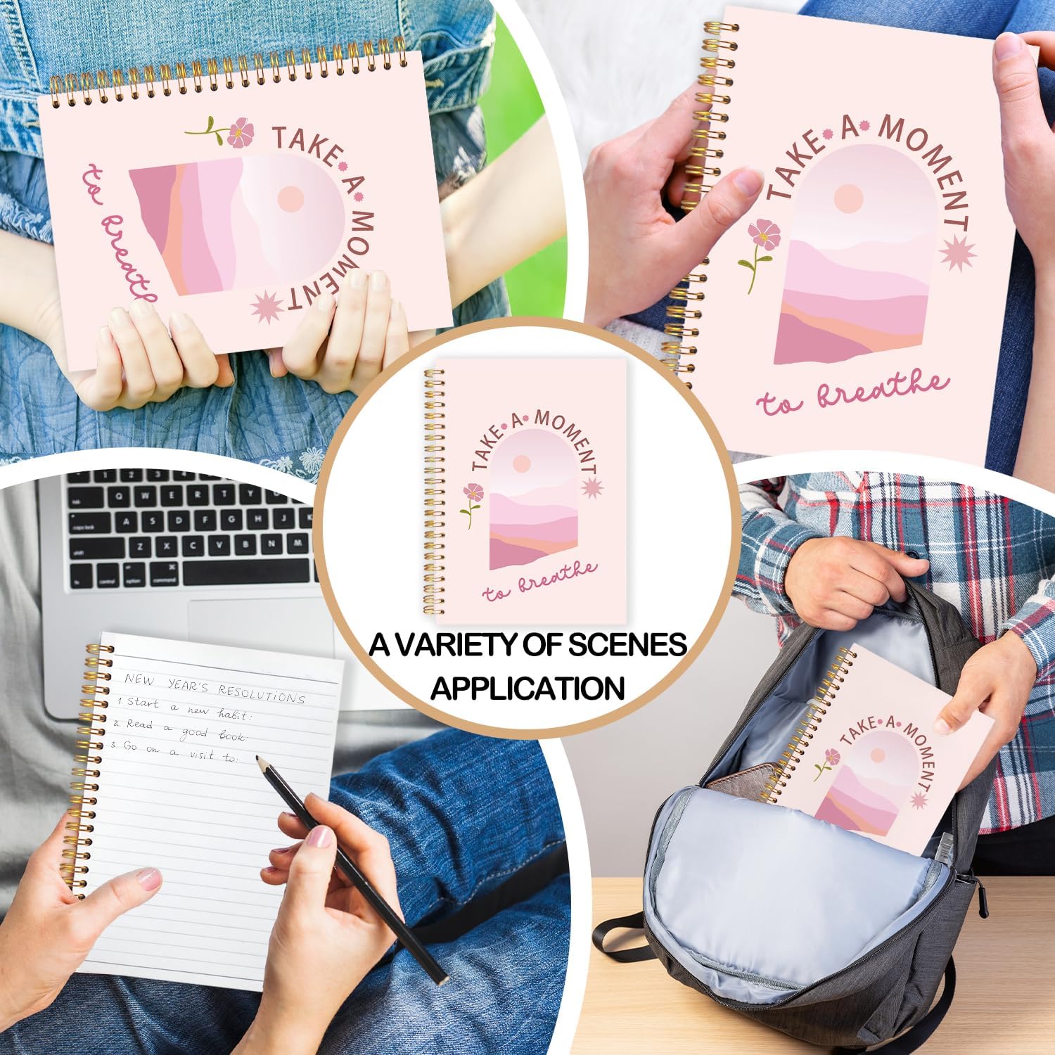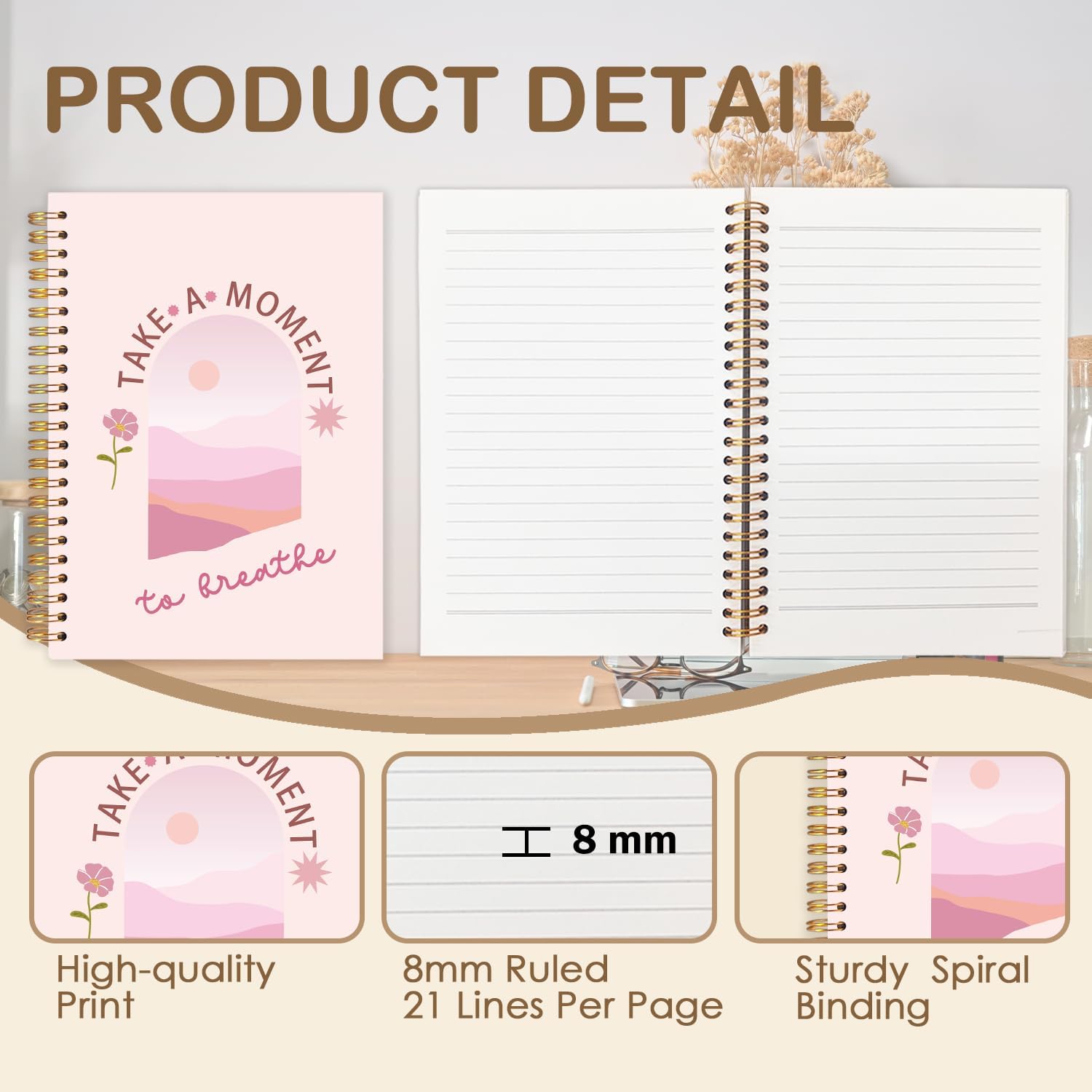 FDHSPAAM Pink Mental Health Spiral Journal Notebook 5.5x8.3in,Take A Moment to Breathe Inspirational Notebooks for Note Taking, Therapy Office Must Haves, Hardcover Notebook Journal