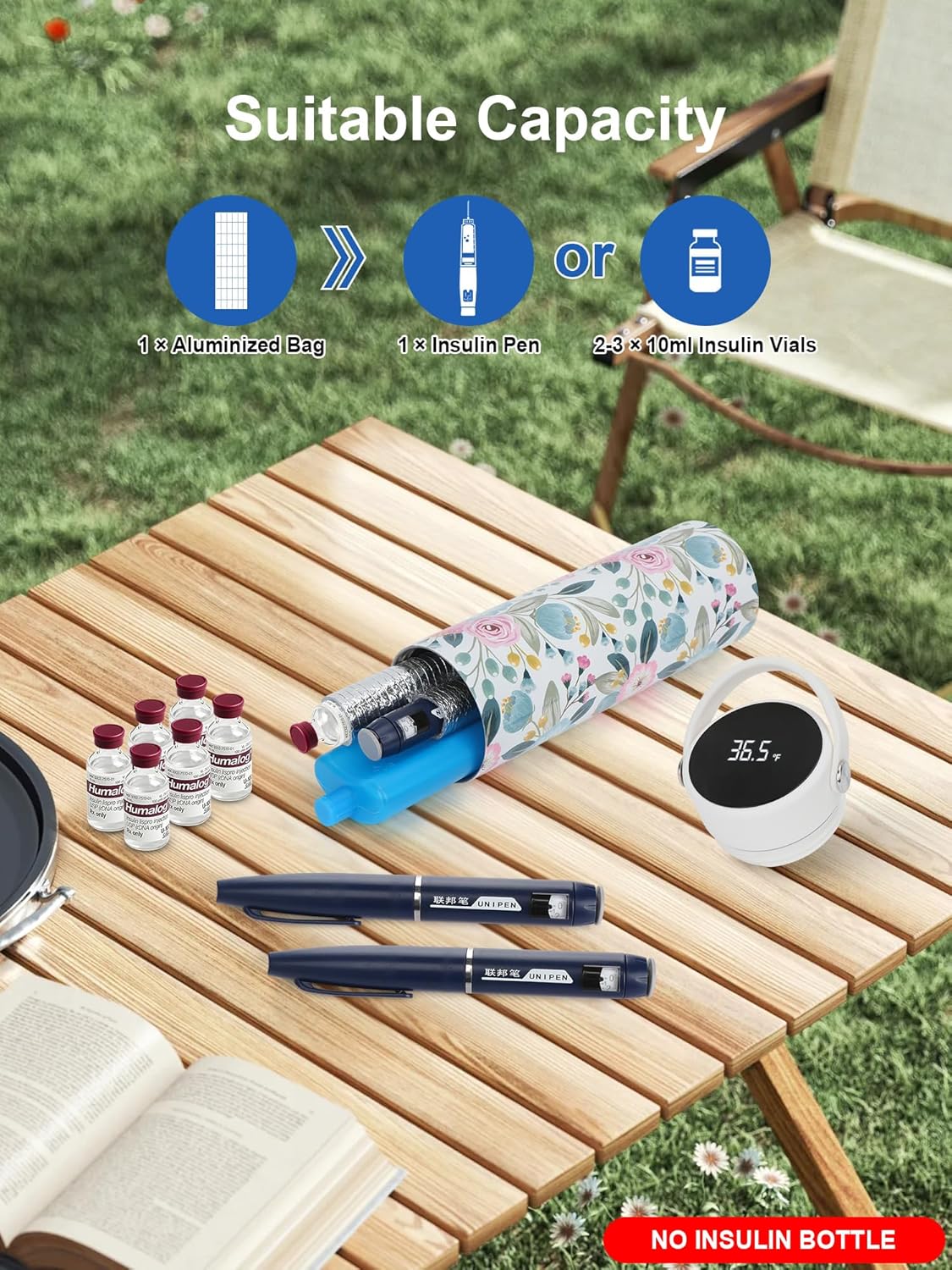- Please Note: The package only includes 2-pack aluminum foil bags, not including the insulin bottle and cooler case for display. A single aluminum foil protection bag can store 1 insulin pen or 1-3 insulin vials, which is the perfect accessory for the medicine refrigerator
