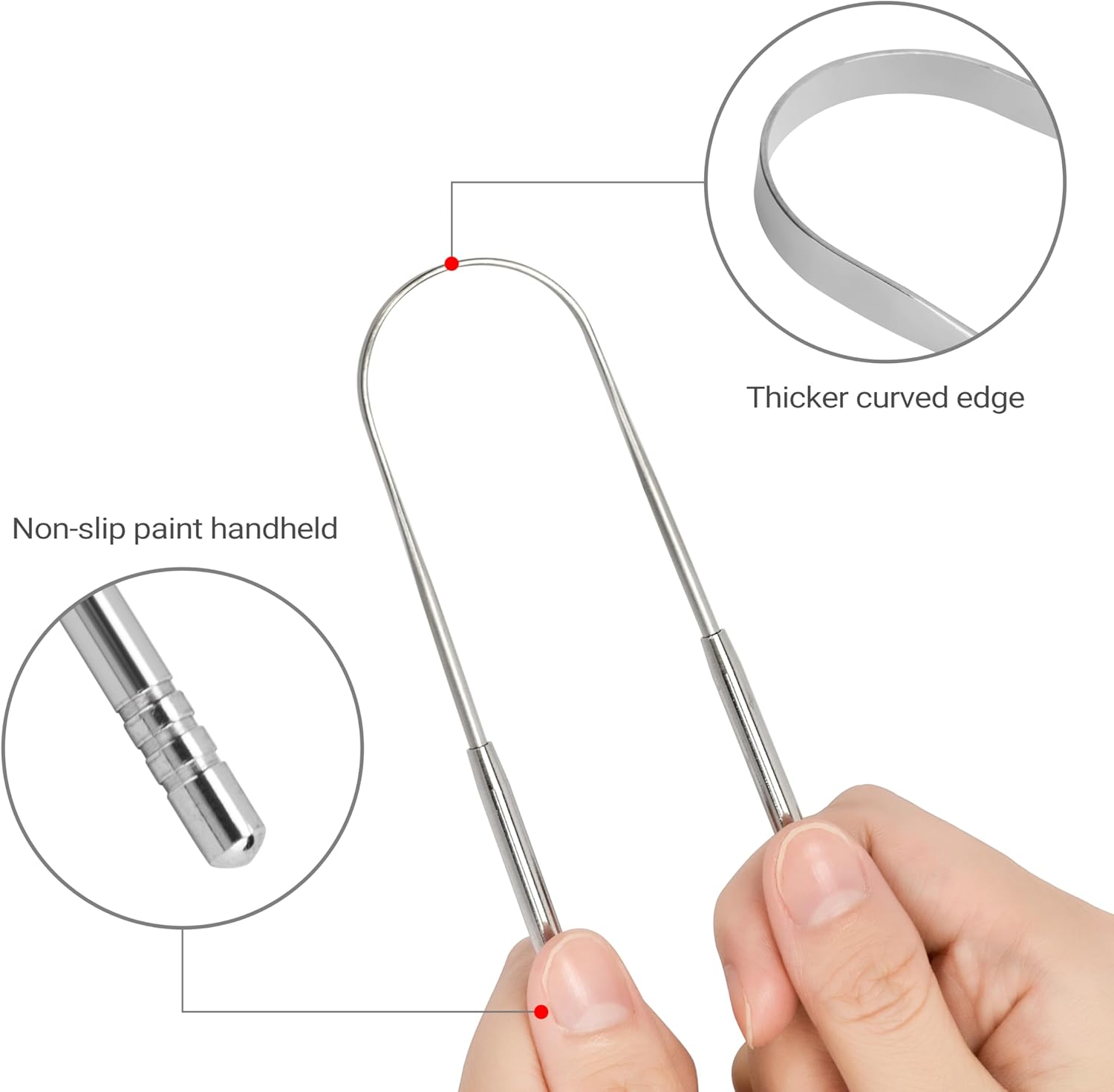 - RUST-PROOF, 100% STAINLESS STEEL: This tongue scraper is made with high-quality, 100% Stainless Steel to ensure durability and performance. This tongue scraper is specially designed to clean the hard to reach places in your tongue, keeping your mouth feeling fresh and clean. This tongue cleaner won't be beat!