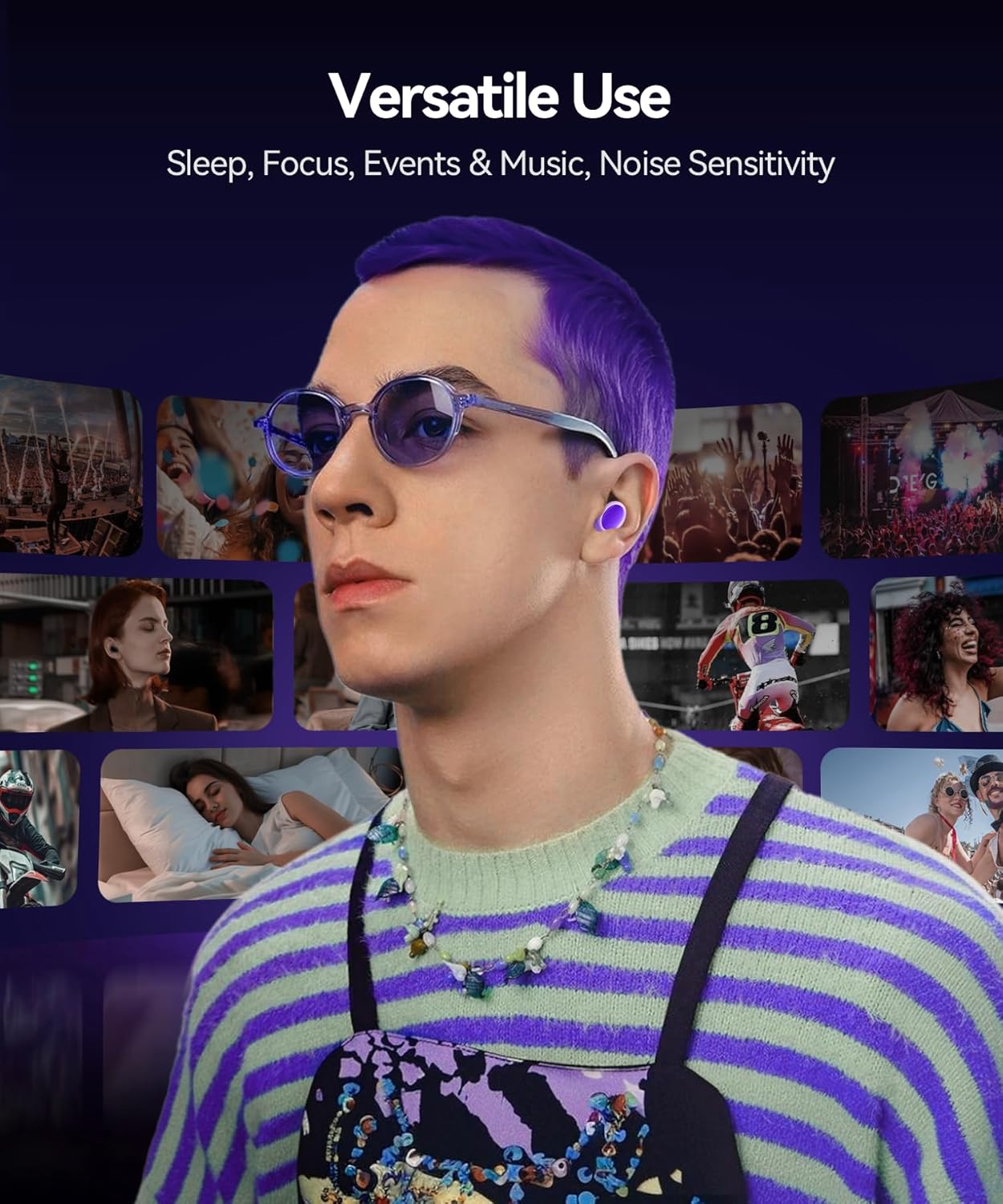 - Cloud-like Sleep Comfort and Fit: Made with ultra-soft silicone, earplugs for sleep reduces pressure on the ear, ensuring comfort - whether you're tossing, or side-sleeping. Innovative 3D ergonomic and ultra-light design molds to your ear canal, sleeping earplugs providing a snug, secure fit—ideal for side sleepers, active concert-goers, or travelers. With 8 sizes eartips (2 pairs -XS, S, M, L), concert ear plugs fit 95% of ear shapes. Enjoy all-day comfort with our ear plugs for noise reduction