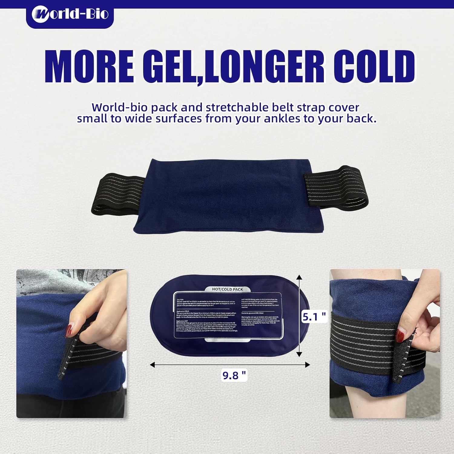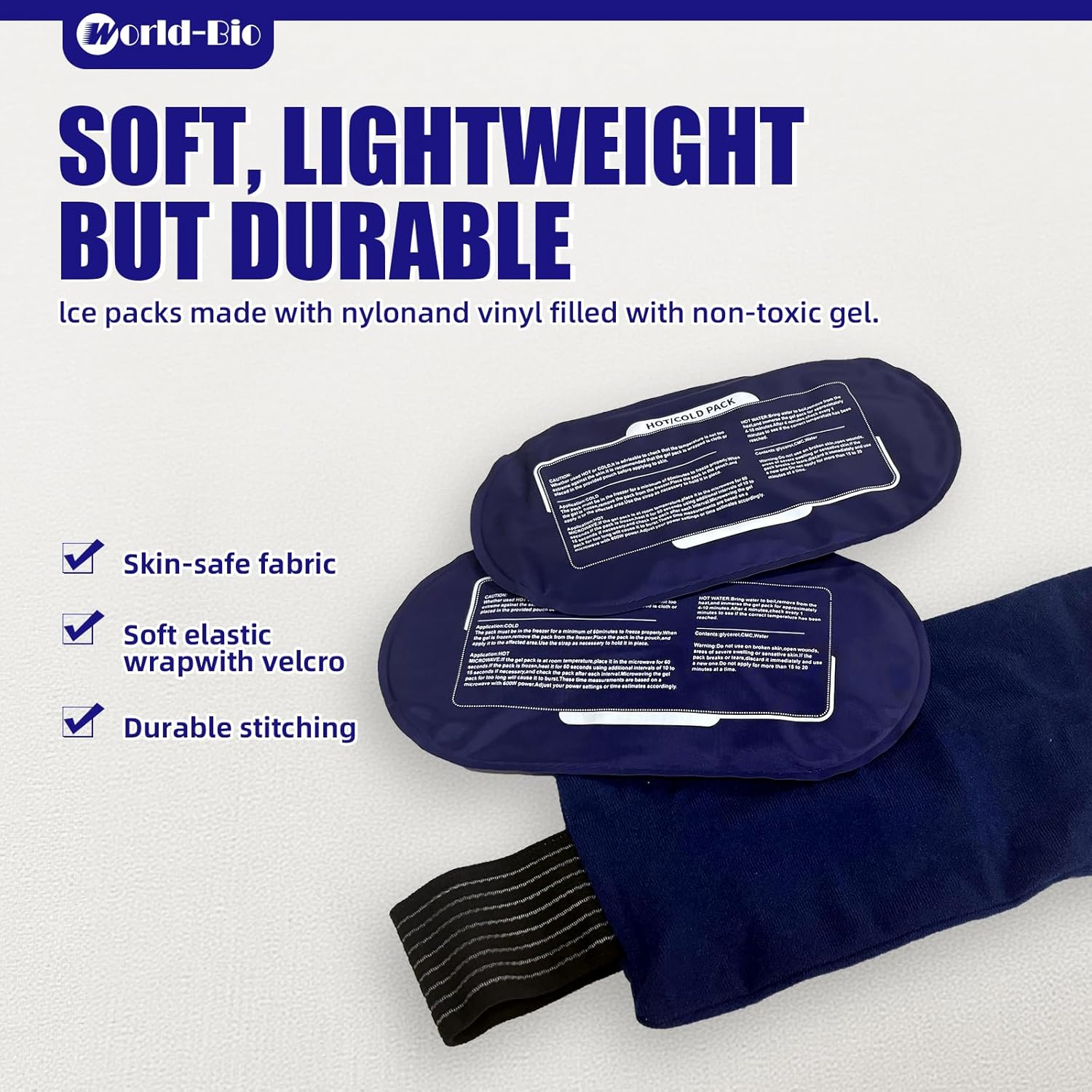 World-Bio Ice Pack for Sports Injuries,Reusable Ice Packs with Adjustable Straps for Muscle Pain, Swelling, Multifunctional Hot and Cold Compress for Knee, Shoulder, Arm, Leg,Back,Head,Ankle