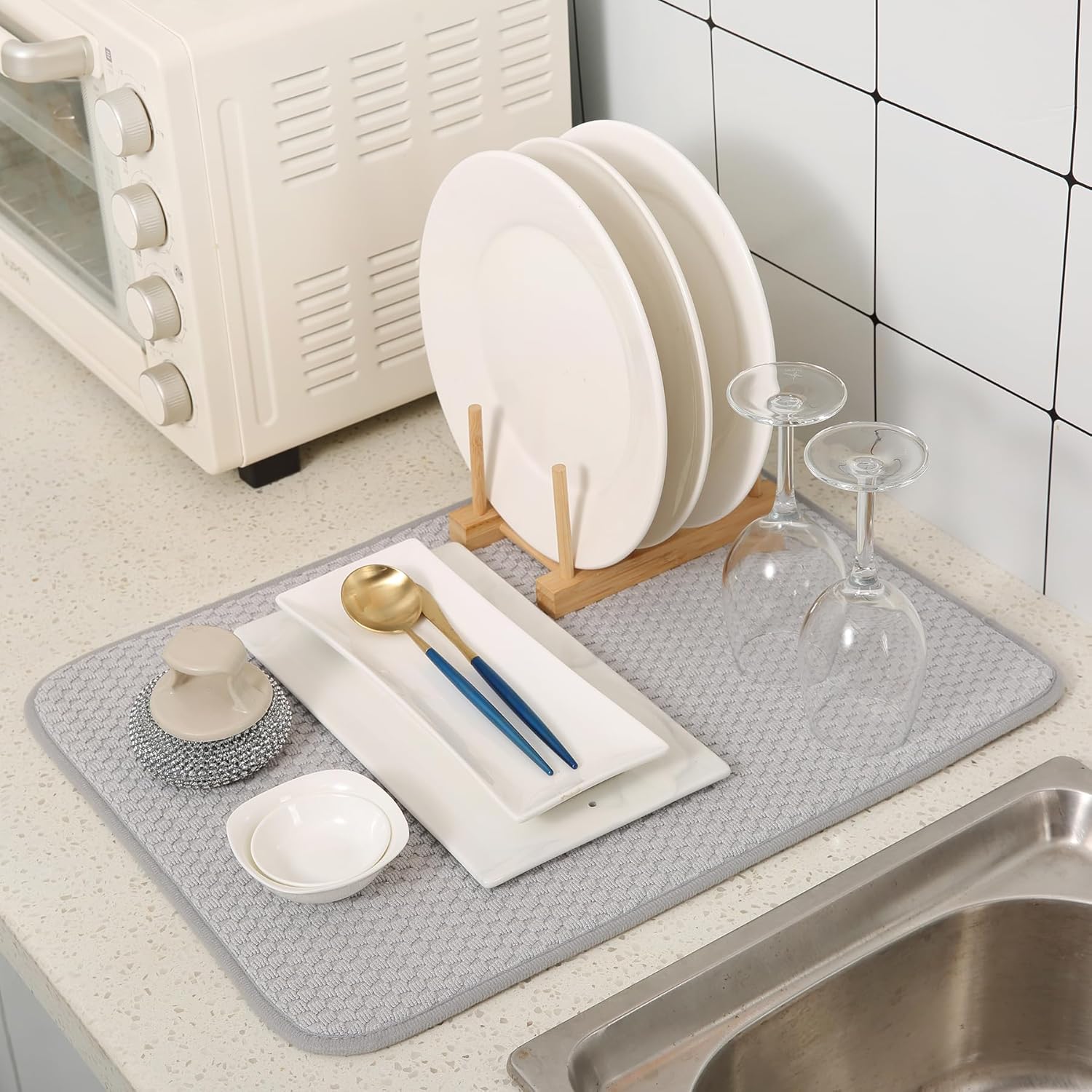 - LARGE SIZE DESIGN: Each kitchen drying mat measures 20 × 15 inches, spacious area allows you to dry multiple plates simultaneously, saving time and effort.
