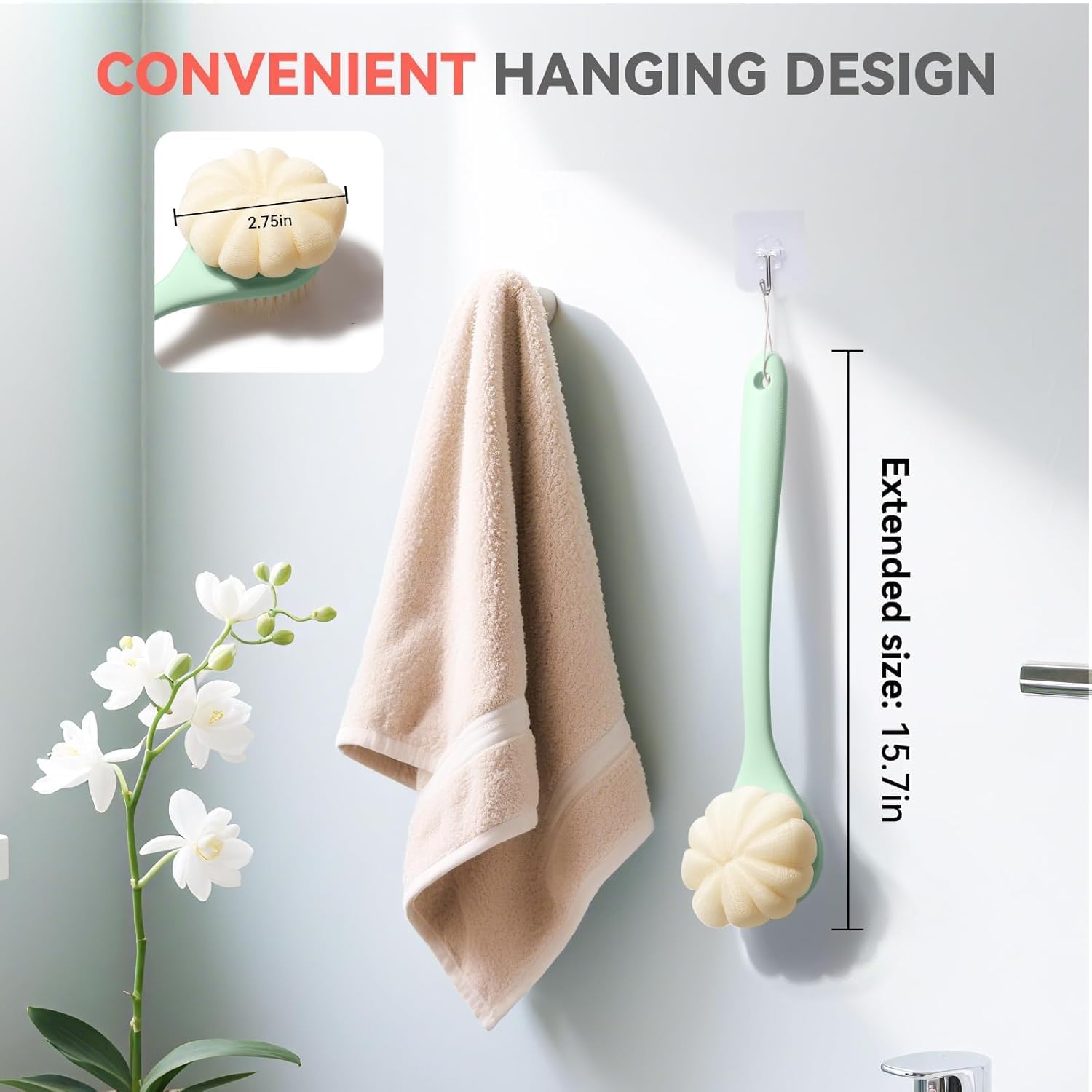 - Extra-Long Non-Slip Handle, Cover More: This shower brush for body 15.7 inches Extended Handle Allows. Shower brush features an ergonomic, long handle to scrub all those hard to reach places. Our shower back brush with long handle a nice soothing feeling while effectively cleaning your entire body. Perfect for tall users or limited mobility.