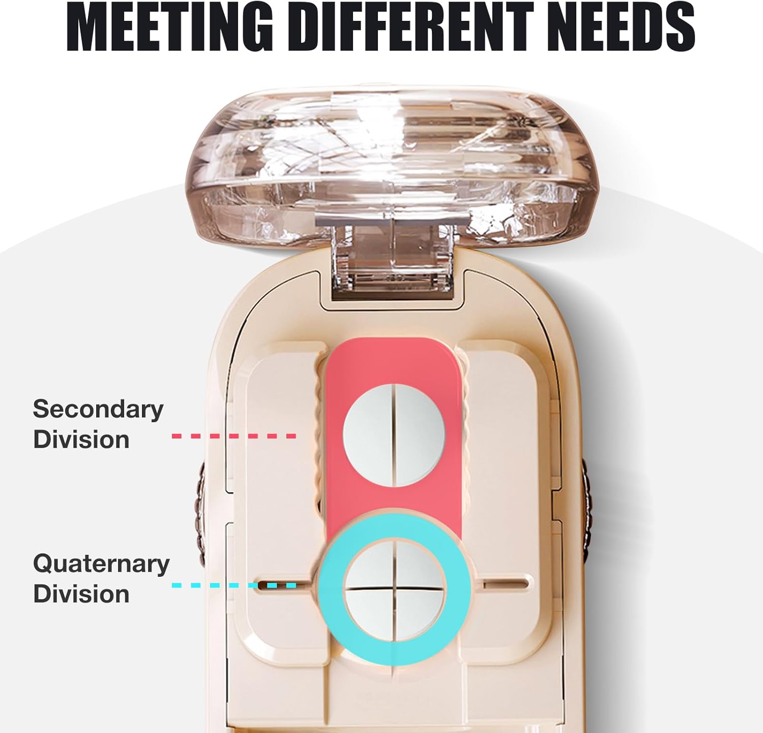 Portable Pill Cutter with Adjustable Slots – Multi Pill Splitter for Small & Large Tablets, Stainless Steel Blade, Clear Cut, Non-Slip Design, Easy to Use for Weekly Medication(Beige, 1/4)