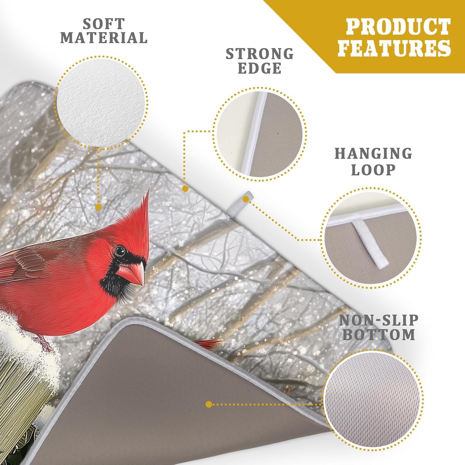 - 【Protect Tableware】Place your dishes on it or under dish racks, the cardinal bird dish mat prevents bowls, glassware, and more tablewares from being scratched or worn, can be used as dish drying mat, sink mat, dishes drainer mats to keep the countertop dry and tidy.