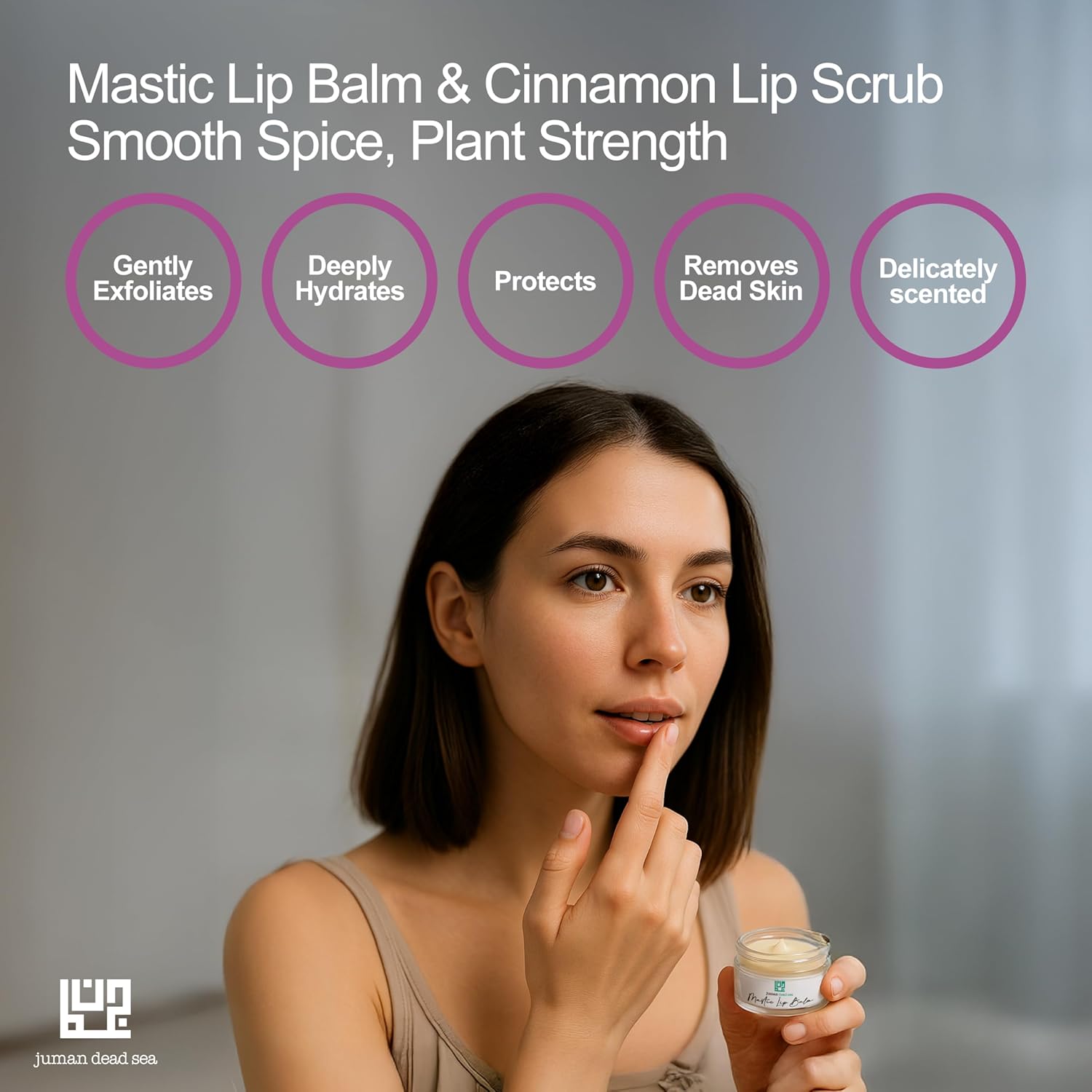 Juman Dead Sea Minerals Lip Gift Set | With Essential Oils | Exfoliating Lip Scrub & Moisturizer Set | Mastic & Cinnamon | Vegan | SLS & Paraben-Free | Great as a Gift