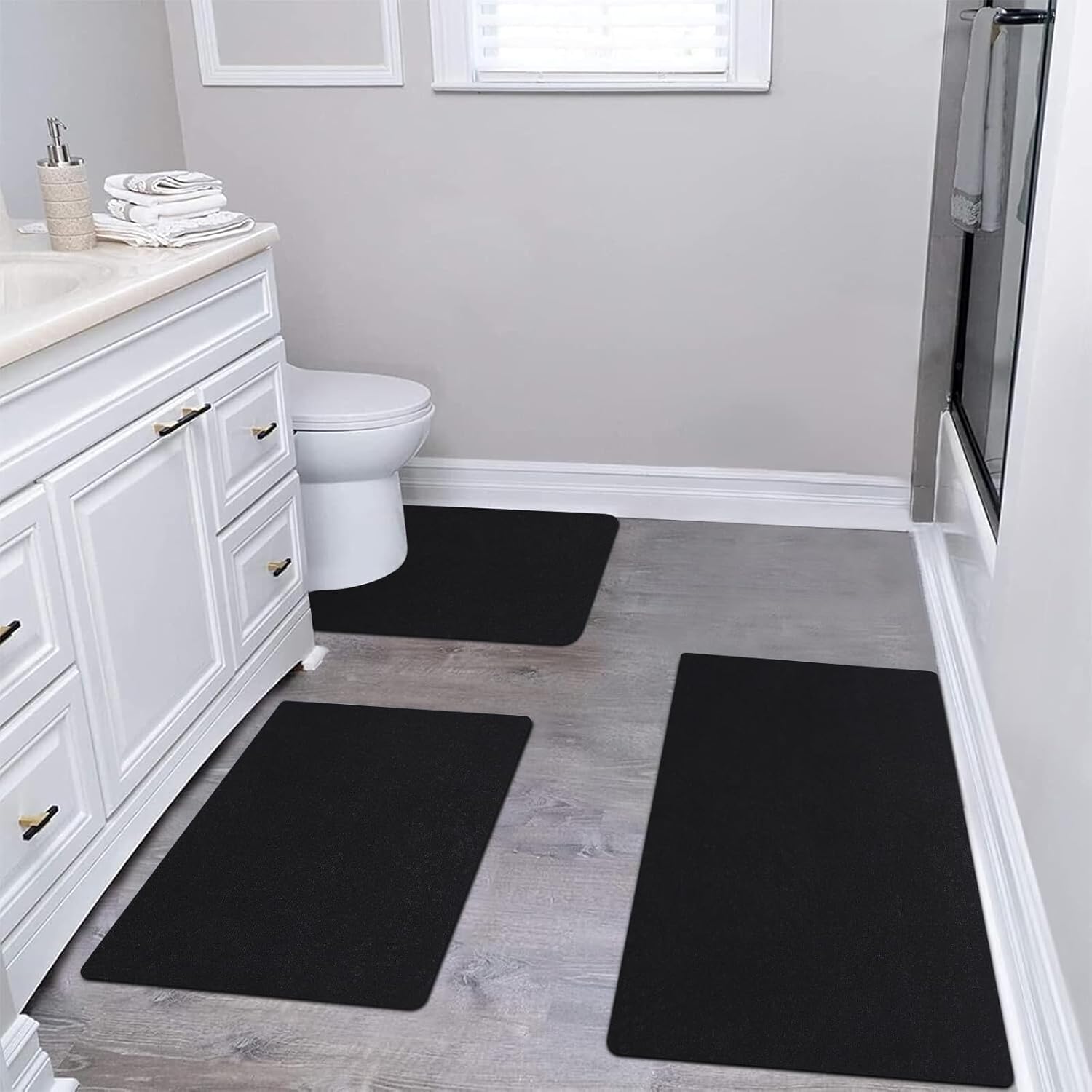 Diatomaceous earth bath mat Bathroom Rugs Sets 3 Piece Super Absorbent Quick Dry Bath Mats, Rubber Non Slip Shower Mat and Toilet Mat U Shape, Shower Rug for in Front of Bathtub Shower, Black