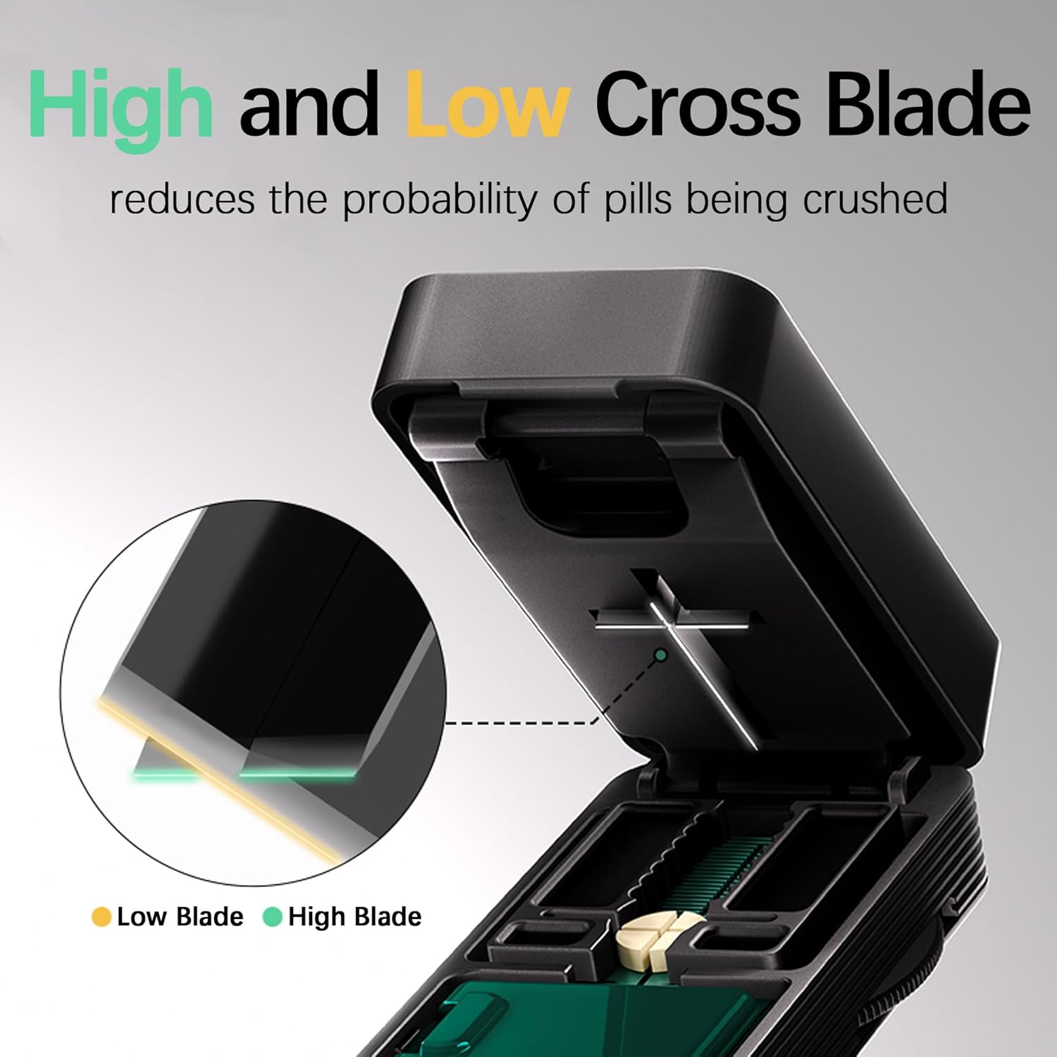 - 【Hidden Blade】This pill cutter for small and tiny pills features a sharp stainless steel blade that cuts your pills clearly, the silicone pad on the bottom reduces pill crushing. The hidden blade prevents accidental cuts to your fingers, use it with confidence