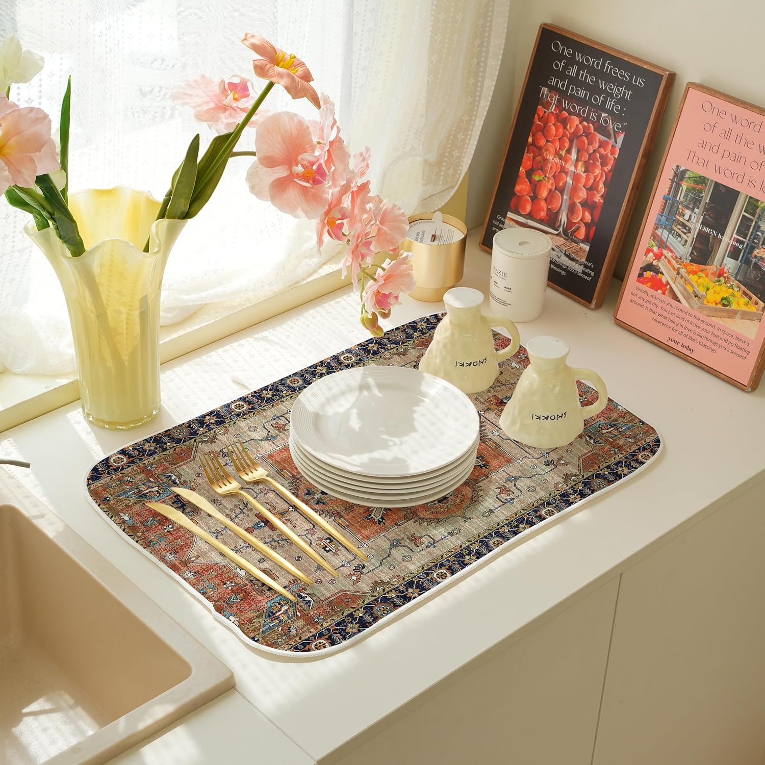 - Widely Used:Kitchen drying mats can be used as coffee bar accessories such as coffee mats, bar mats, or kitchen counters, countertops, and dining tables.