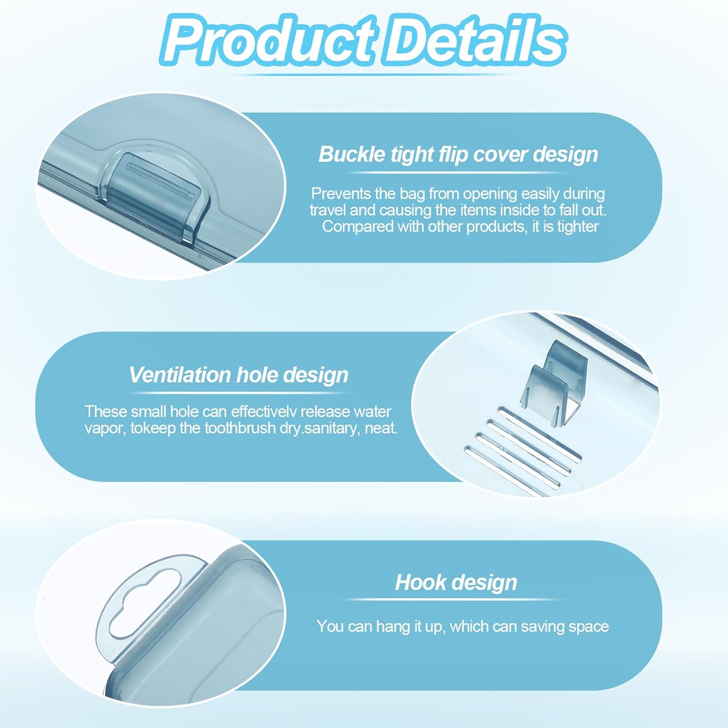 - 【Safety snap design】The tooth brush holder is equipped with a connection ring and a unique snap design to prevent accidental opening during travel, ensuring the safety of toothbrushes and toothpaste, with excellent sealing to keep toothbrushes clean and hygienic