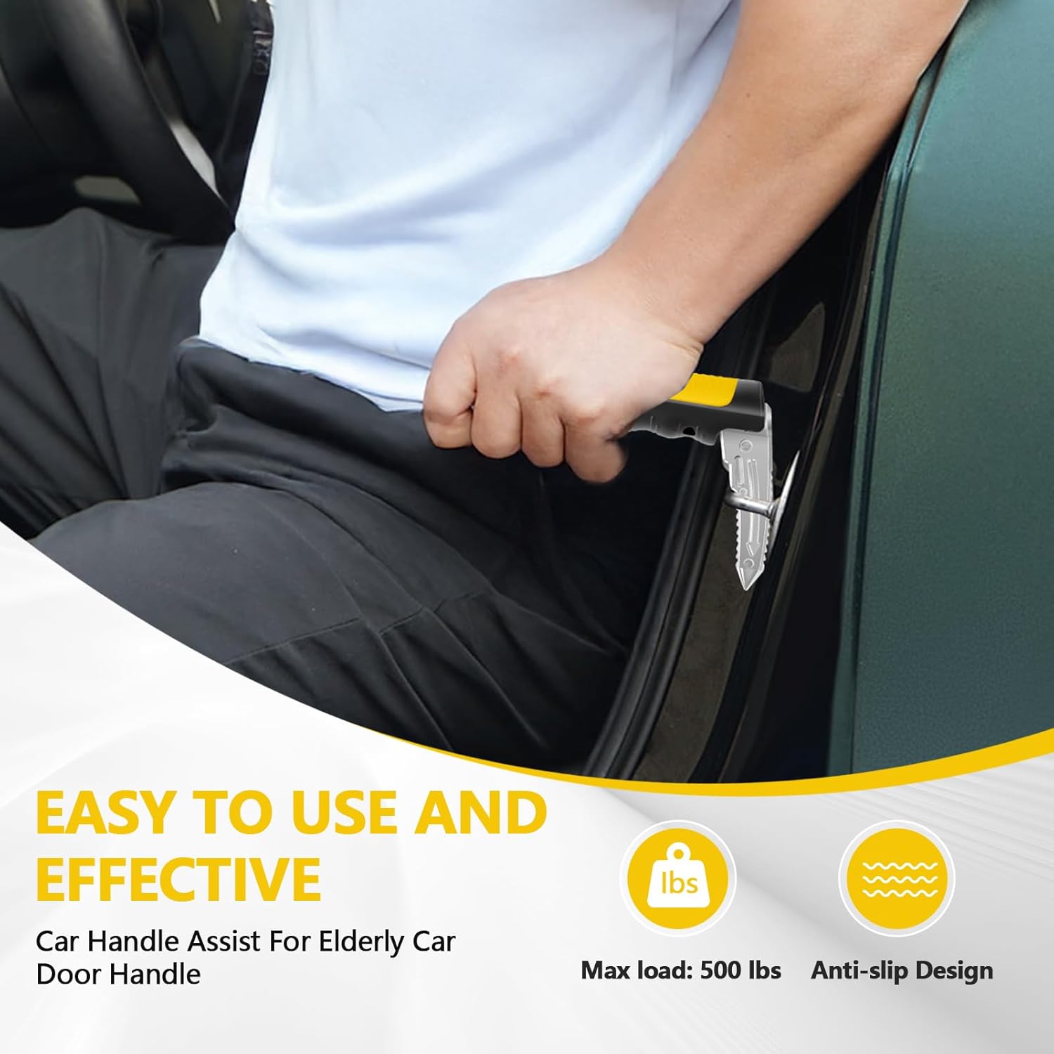 Car Door Handle for Elderly - 2025 New 3-in-1 Car Handle Assist, 2 Pack Auto Cane Portable Vehicle Support Handle Door Assist Bar, Max Load 500 Lbs, Anti-Slip Design (Yellow-1-Pack Car Handle)