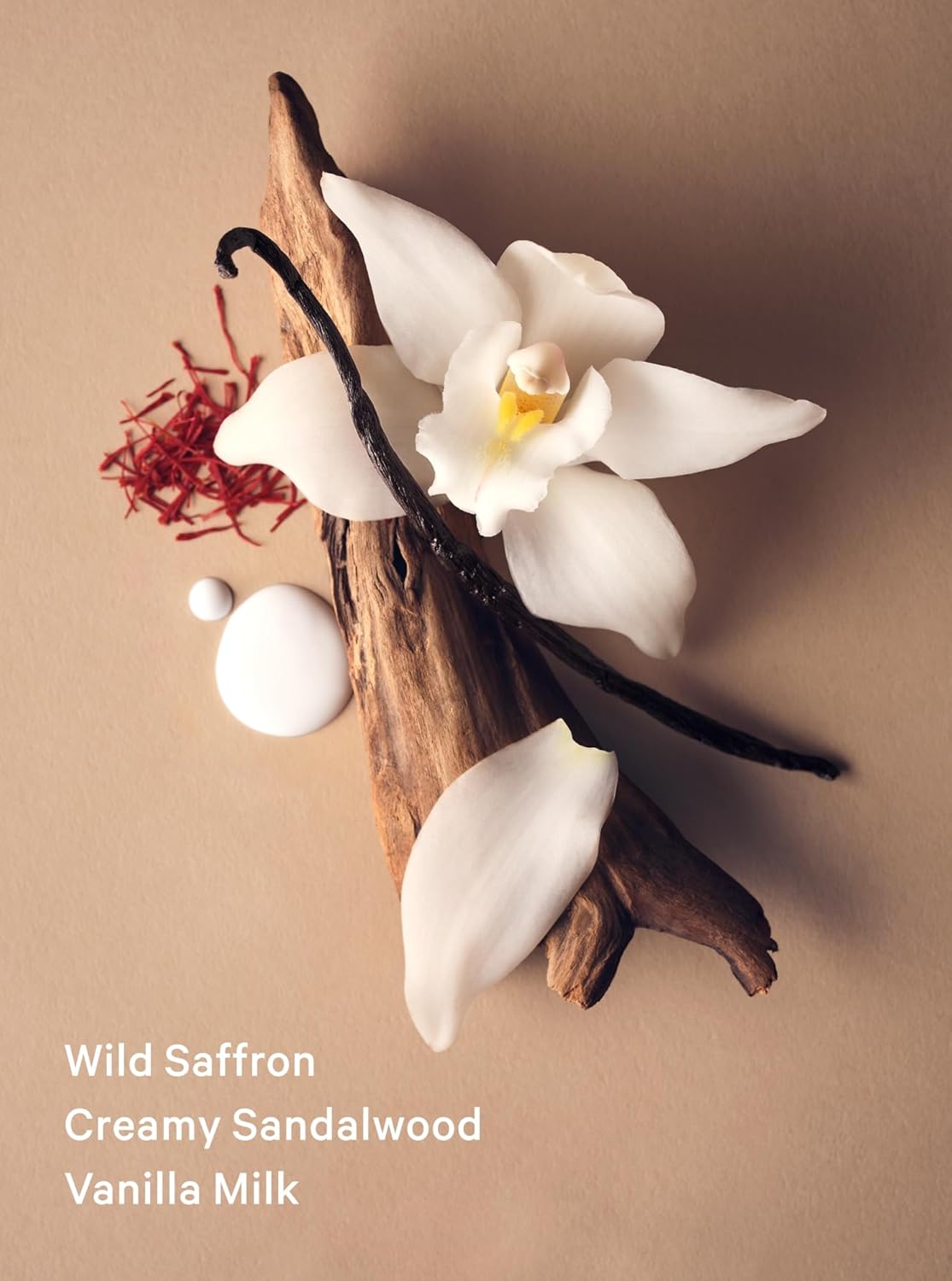 - Scent Notes: wild saffron, creamy sandalwood, vanilla milk