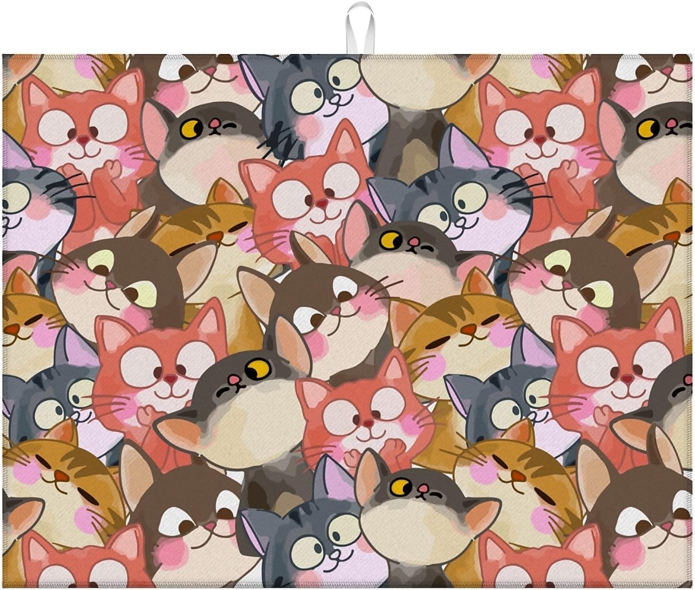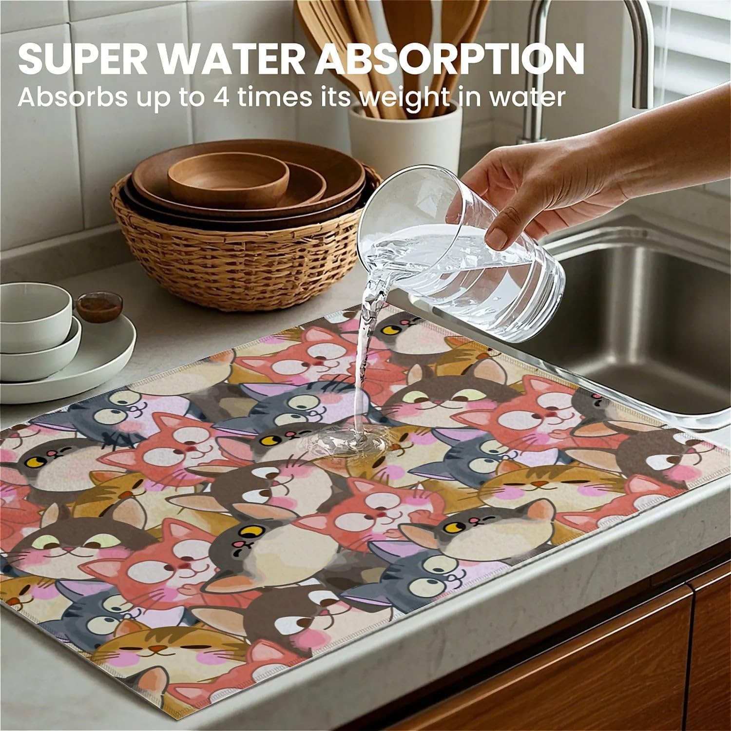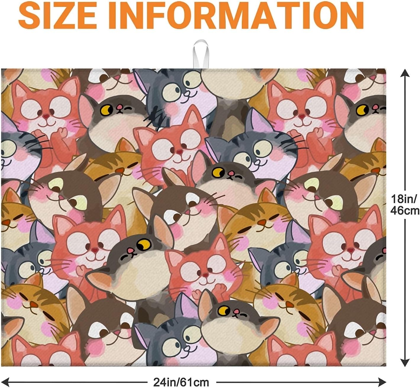 Dish Drying Mat For Kitchen Counter, Colorful Cute Cat Microfiber Absorbent Dish Drainer Rack Pad Reusable Large 18x24in Drying Mat