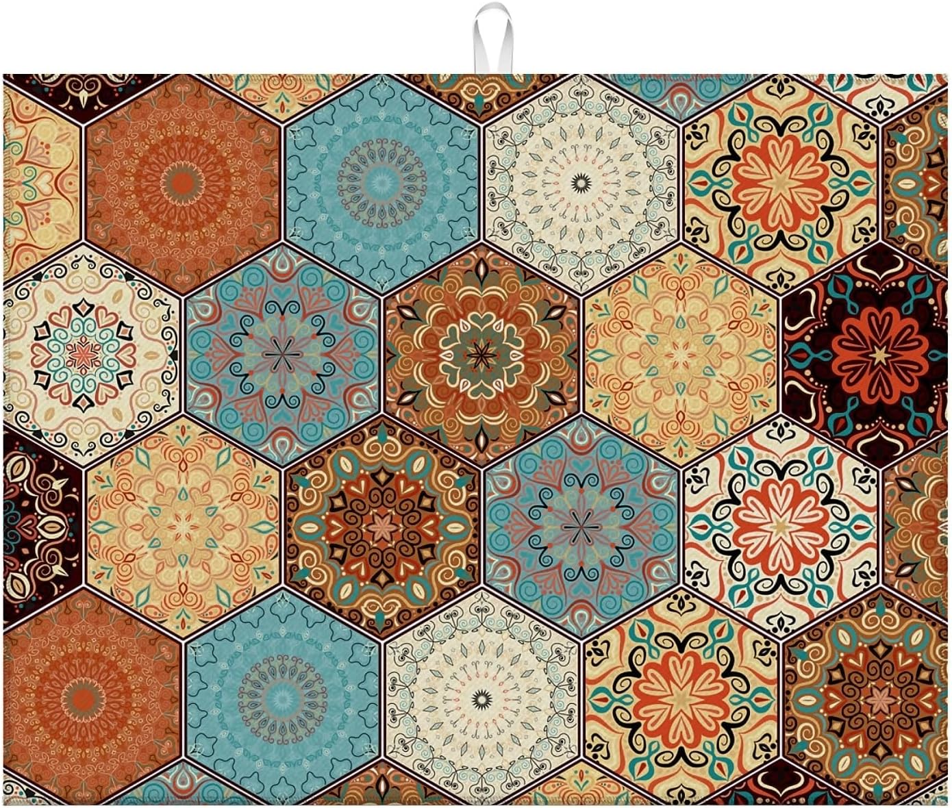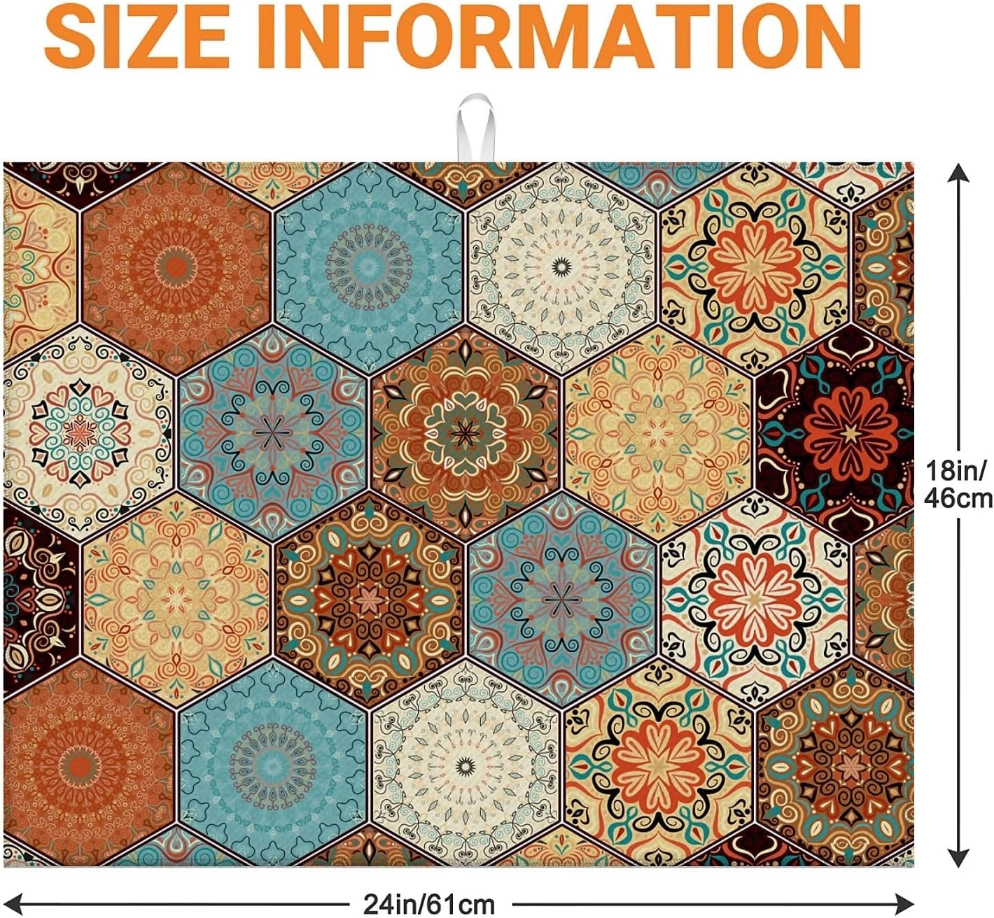 Dish Drying Mat For Kitchen Counter, Personalized Bohemian Microfiber Absorbent Dish Drainer Rack Pad Reusable Large 18x24in Drying Mat
