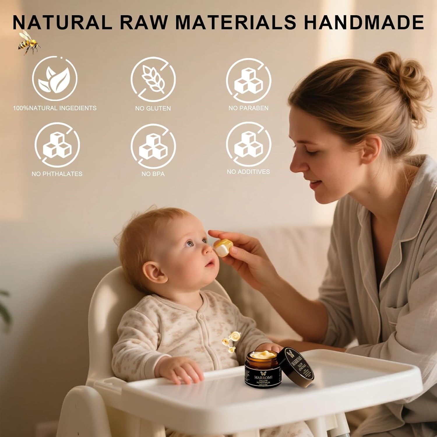 Marromi Beef Tallow for Skin, Tallow Honey Balm, Organic Grass-Fed Beef Tallow Balm with Raw Honey, Natural Soothing Moisturizing (Unscented)