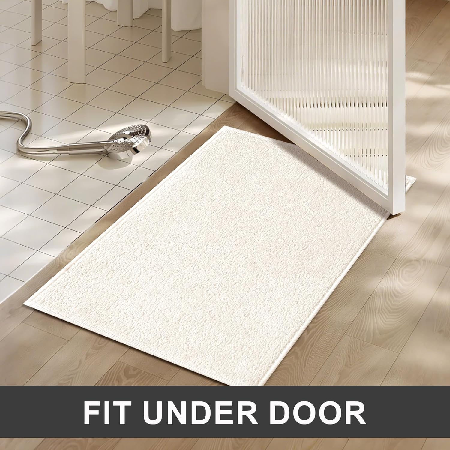 Bath Mat-Non-Slip Bathroom Floor Mats-Absorbent Quick Dry Low Pile Bathroom Rugs Fit Under Door-Bath Rug for Sink,Bathtub,Shower Room,17"×24",White
