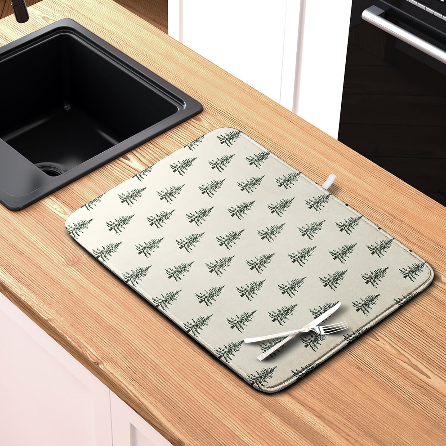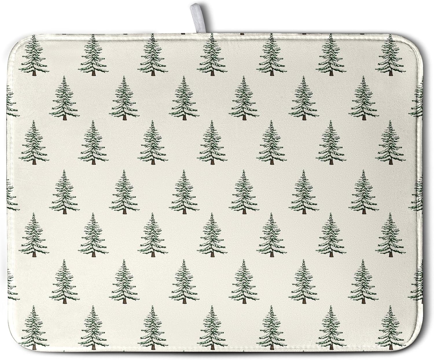 Christmas Tree Dish Drying Mat Winter Xmas Holiday Drying Mats Microfiber Absorbent Dishes Drying Pad Reusable Washable Kitchen Countertop Protector Dish Drainer Rack Mat 18x24 Inch
