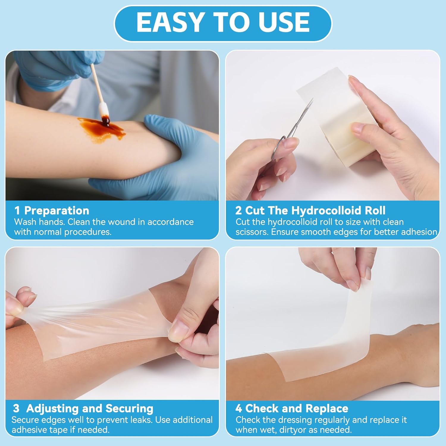 - Customizable Application - Hydrocolloid roll can be cut to different sizes and shapes according to the wounds for personalized cover