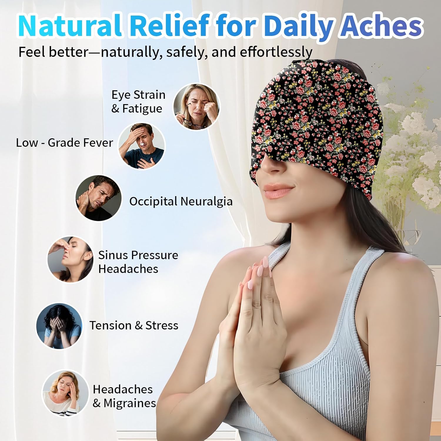 - Drug-Free Pain Blocking Technology Stop headaches at the source! Our cooling therapy naturally constricts blood vessels, slows nerve pain transmission, and relaxes tense muscles – no pills needed. Ideal for migraines, light sensitivity, and tension headaches, providing pure physical relief.